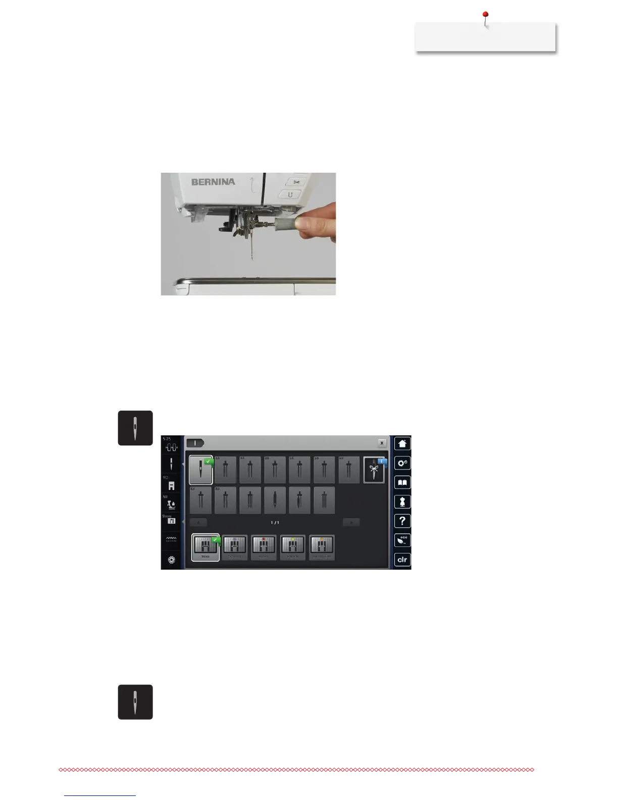 saved additionally on the machine. The saved needle type and the saved needle size can be checked at any