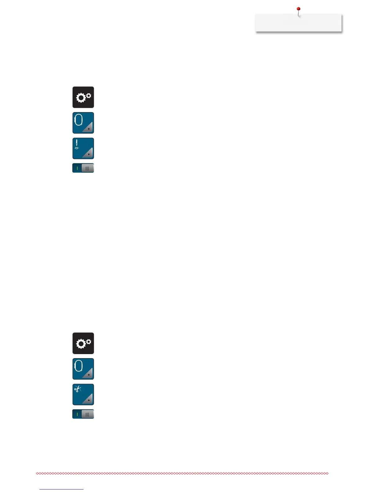 > Touch the icon «Securing stitches on/off».