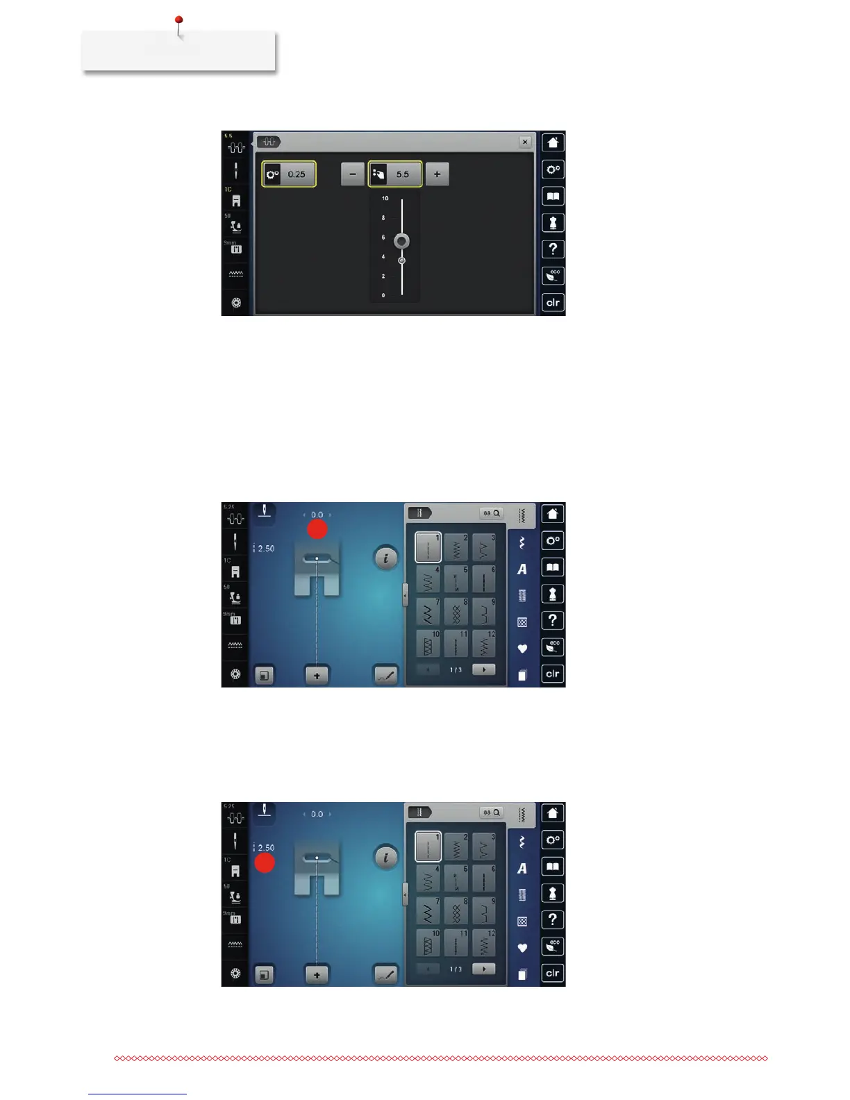 > Move the slide using the touchscreen pen/finger to increase or reduce the upper thread tension.