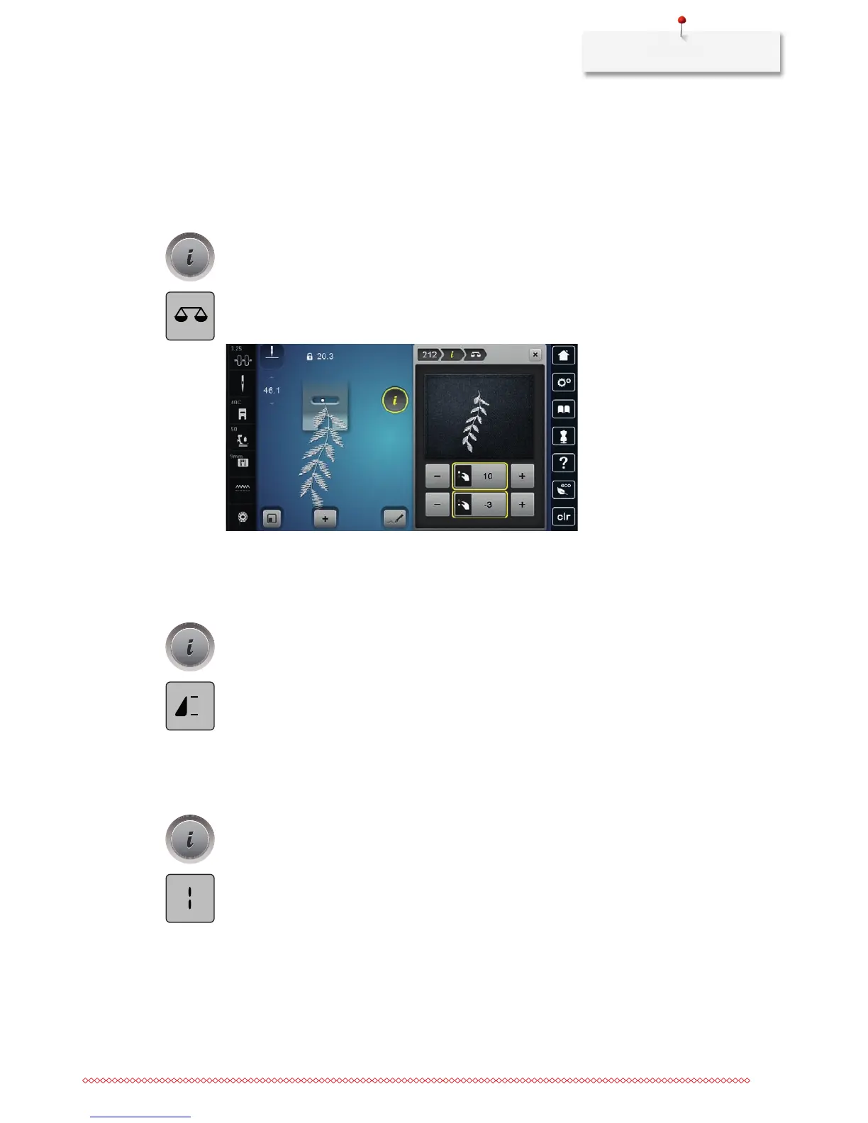> Touch the icon «Pattern repeat» 2 to 9 times to repeat the stitch pattern up to 9 times.