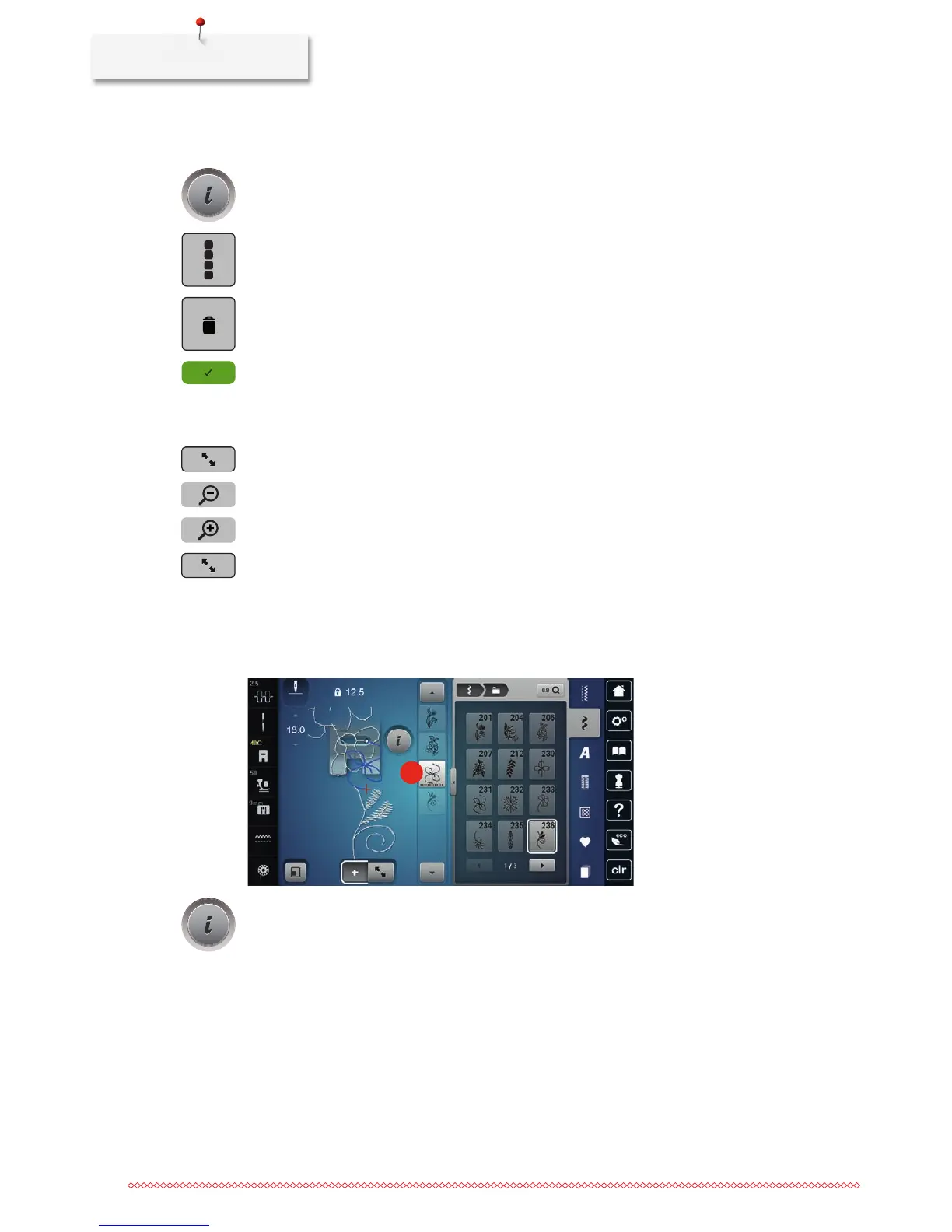 > Touch the icon «i»-Dialog to edit the single stitch pattern.