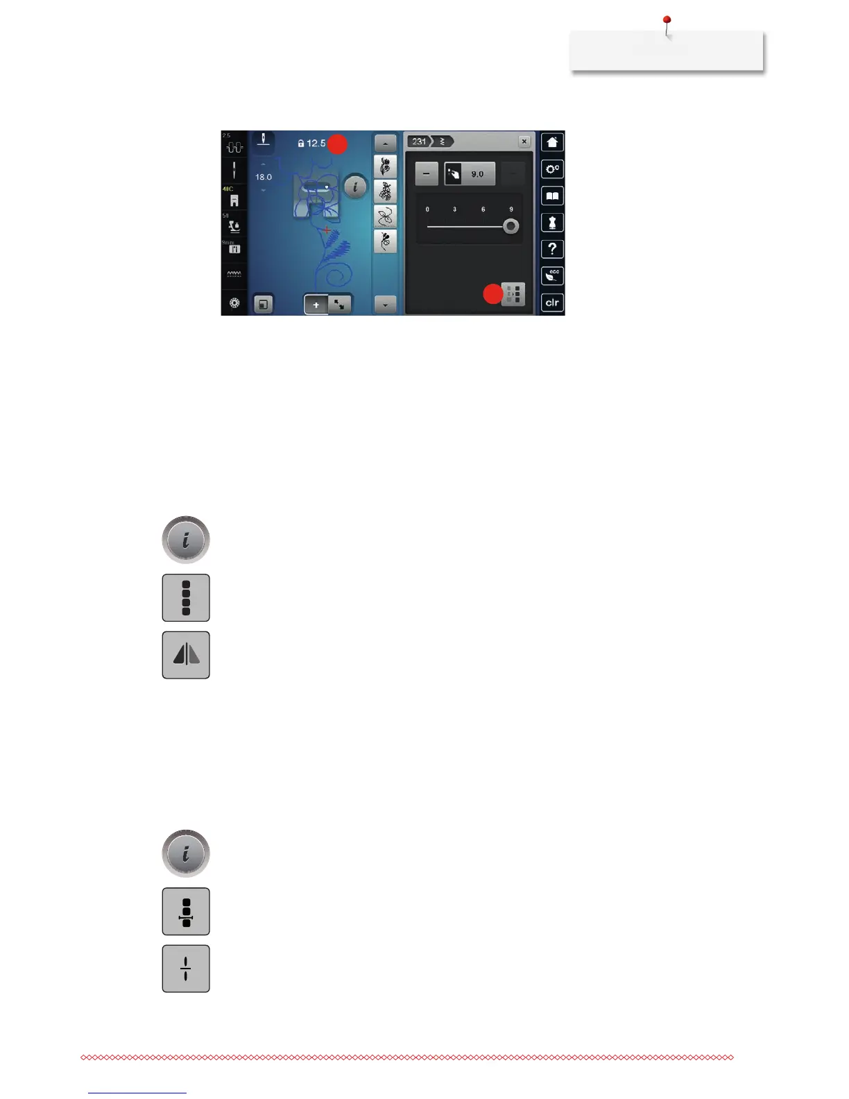 > Touch the icon «Mirror image left/right» to mirror the whole stitch pattern combination from the left to