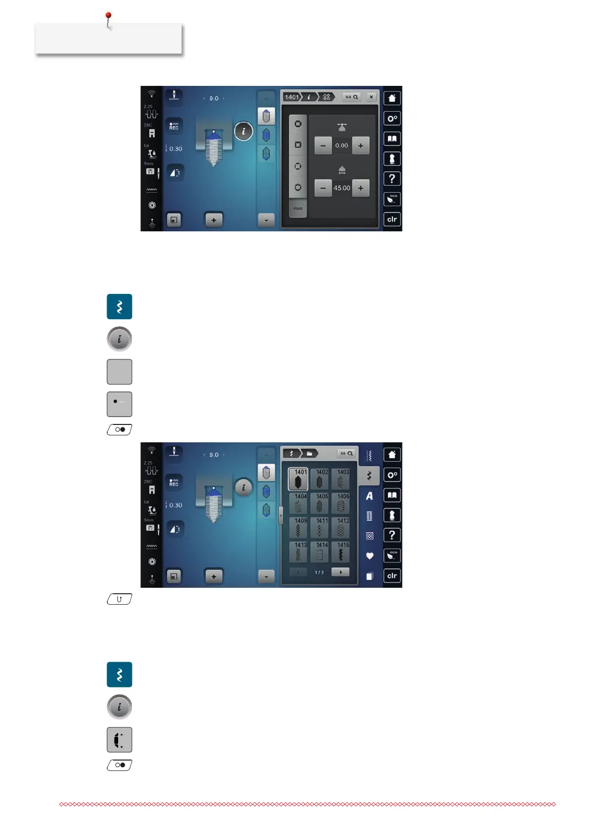 > In order to save alterations to the stitch pattern automatically, tap «Programming the Length of Section