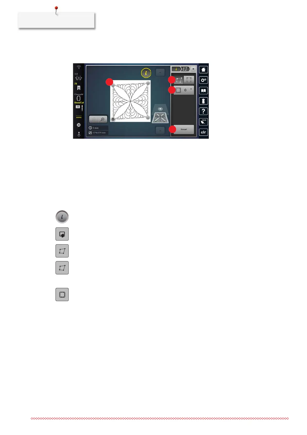 > Adjust the size of the embroidery design to fit into the hoop, as well as the position and the alignment.