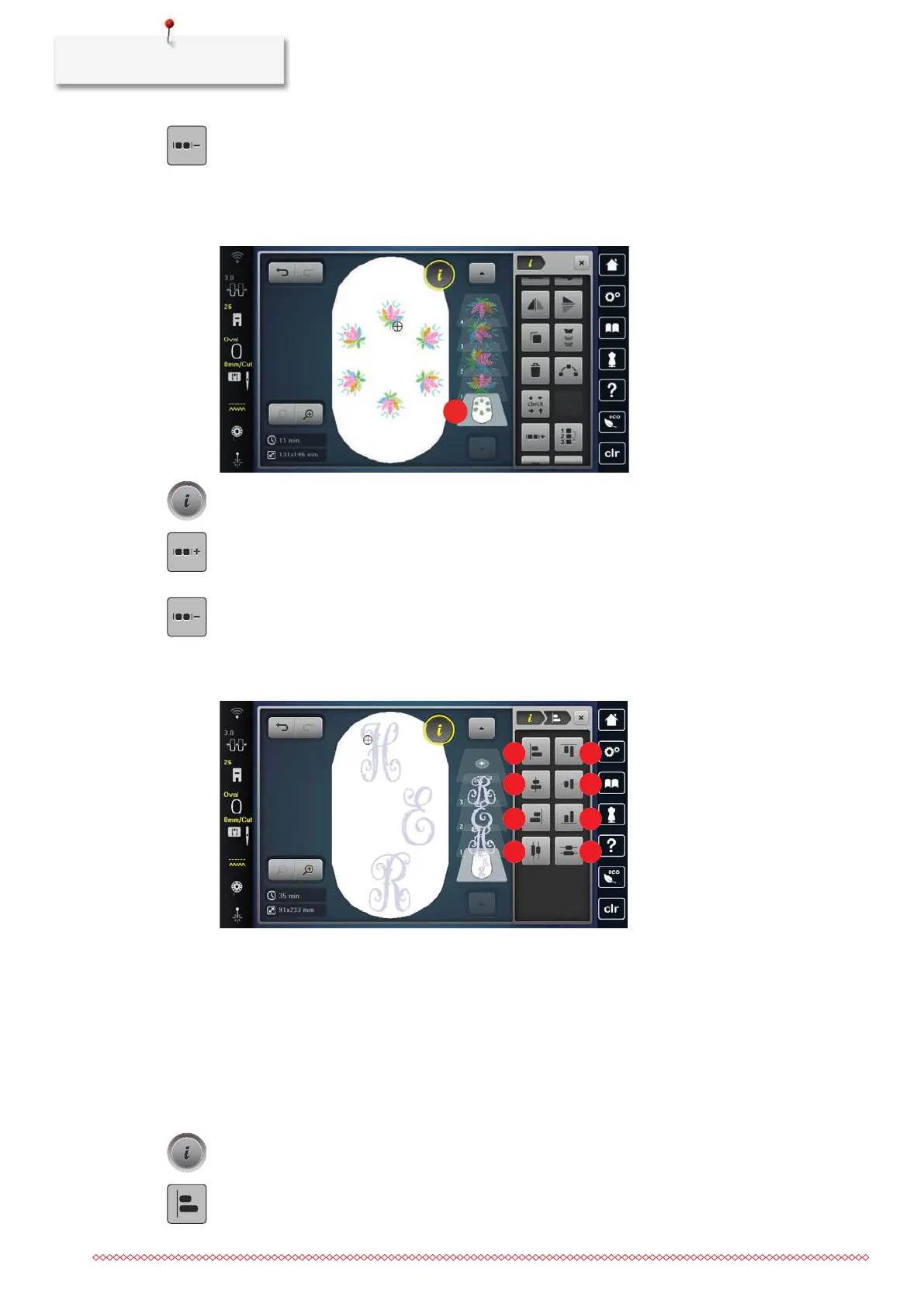 • The embroidery design combination has been created or the motif has been ungrouped.