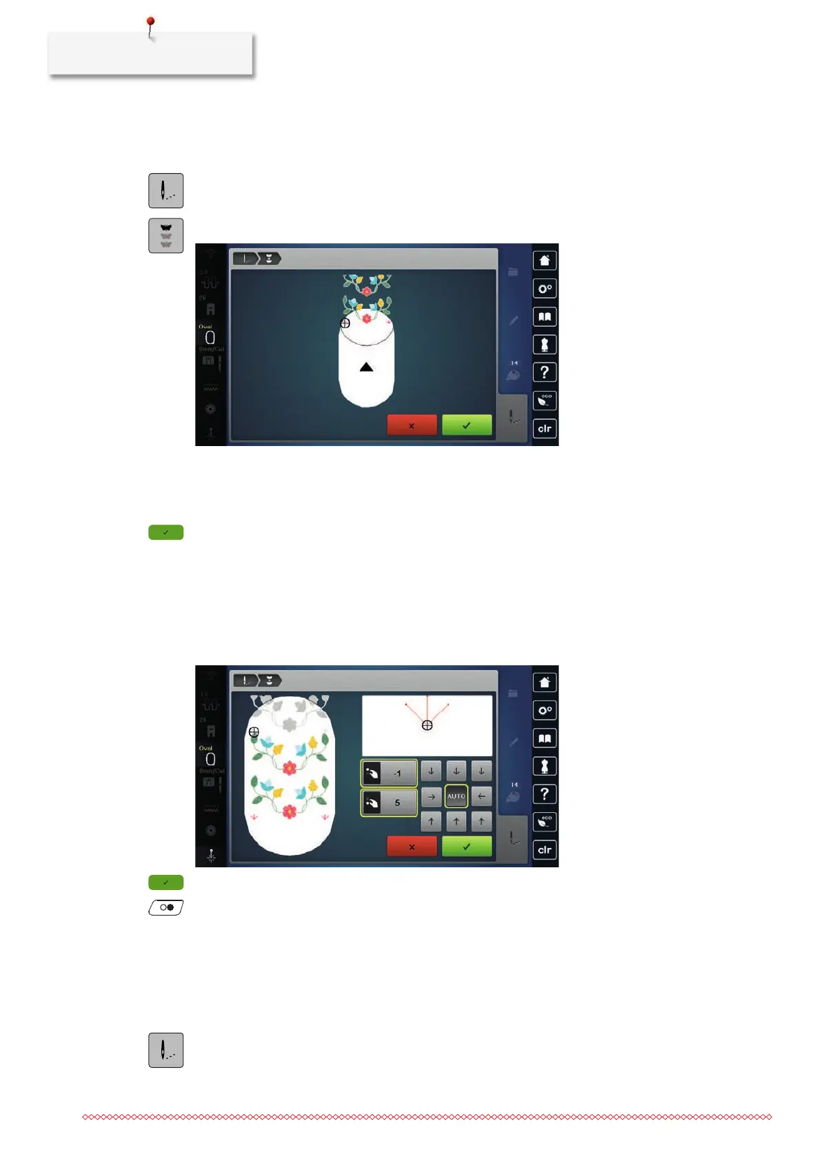> Touch the icon Scroll up to select the previous color of the embroidery design.