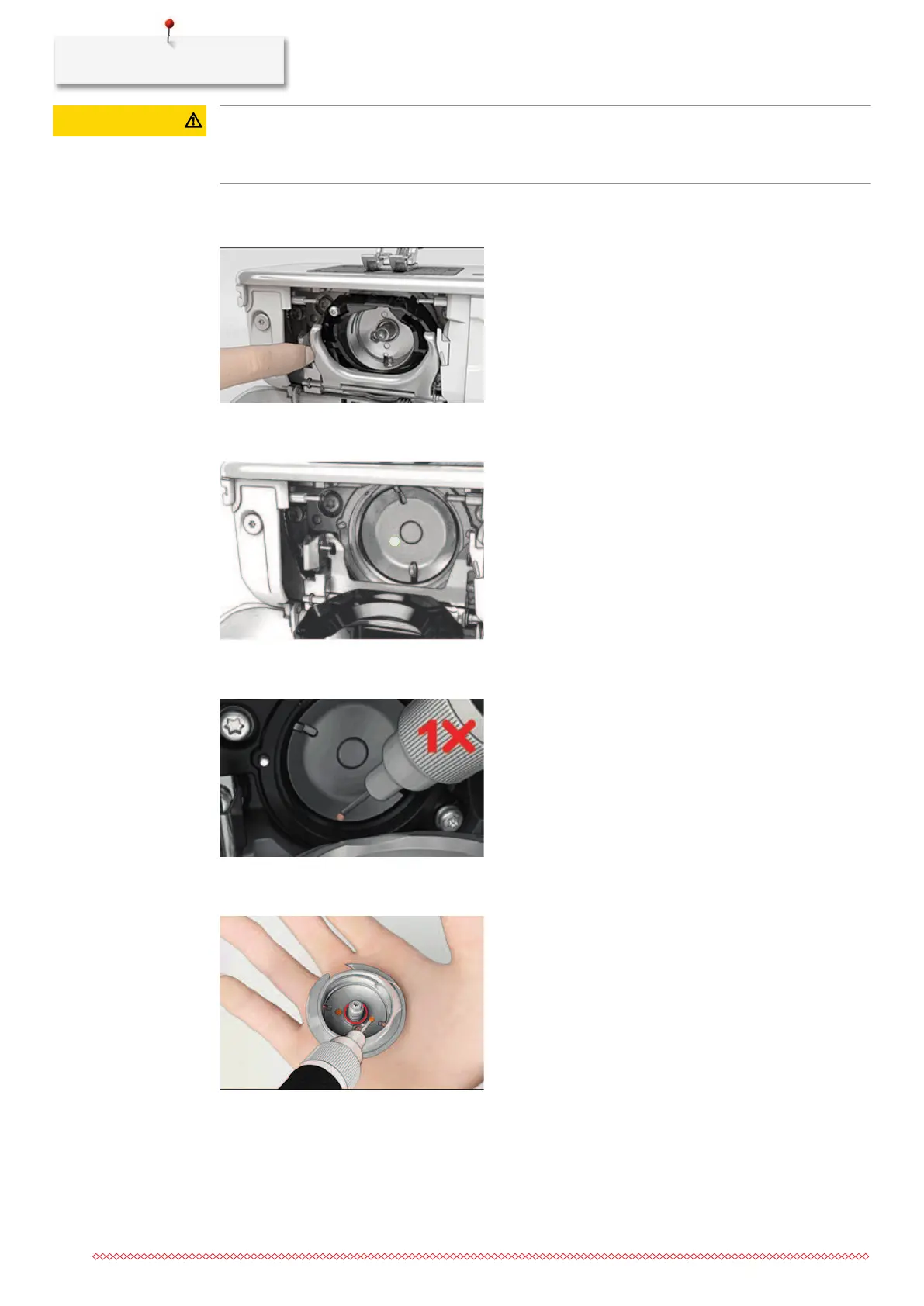 > Remove the bobbin case.