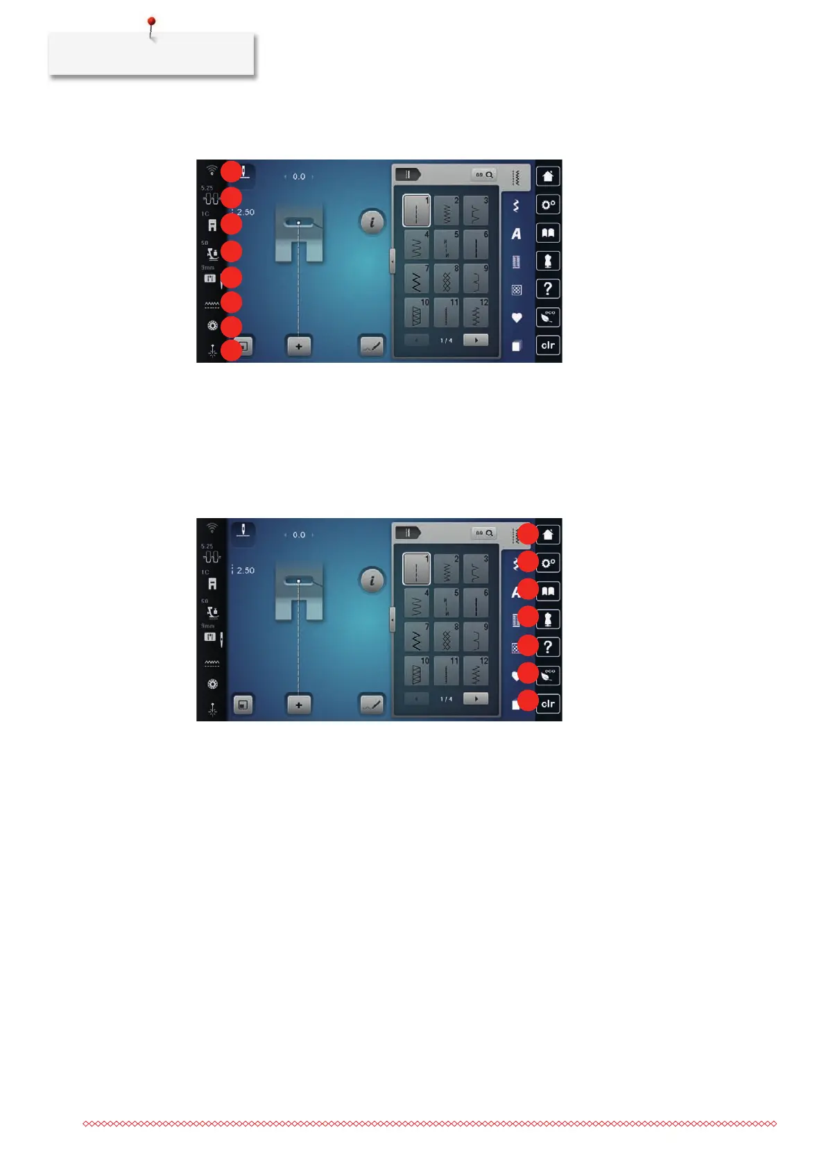 2 «Upper Thread Tension» 6 «Feed Dog Indicator»