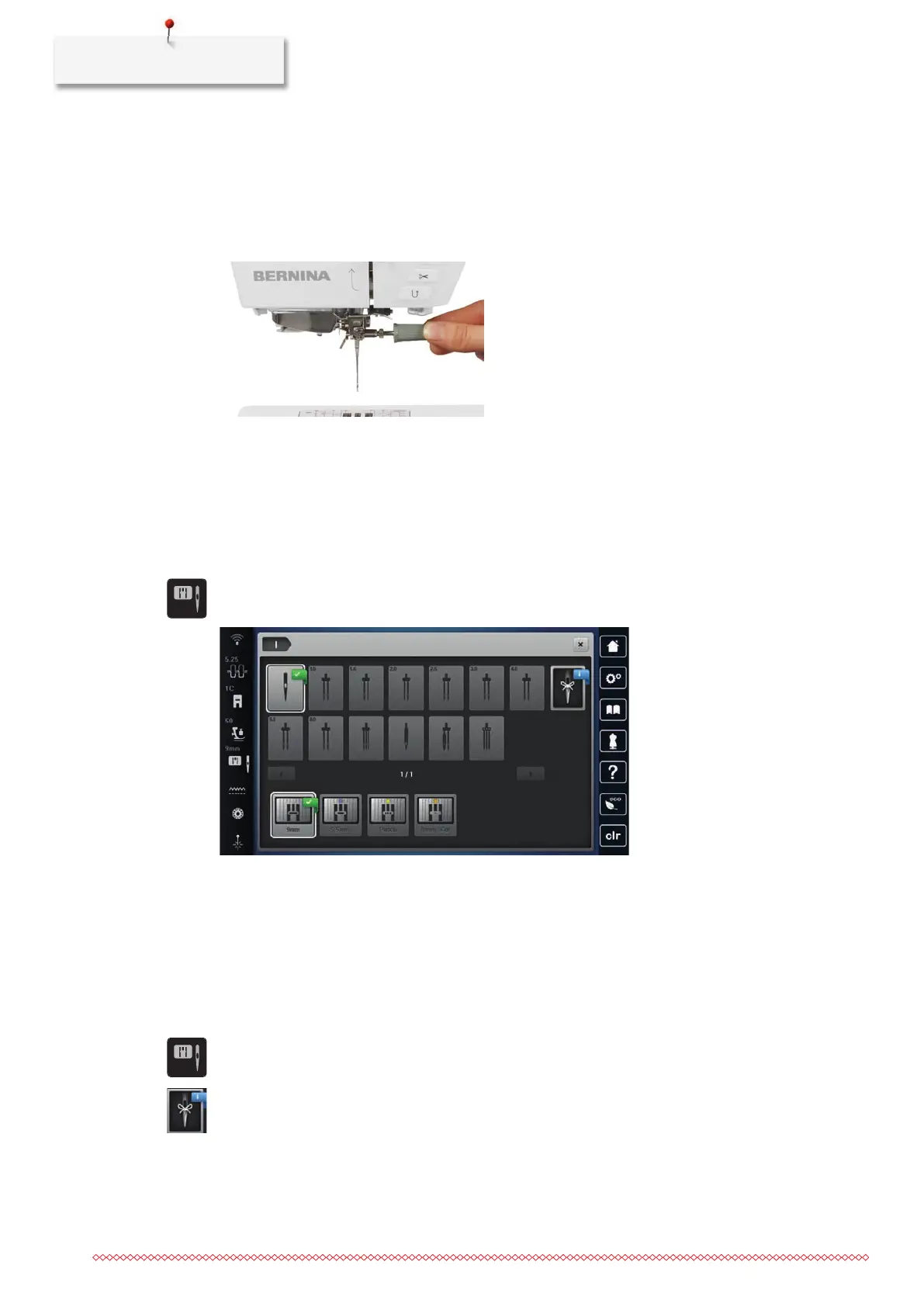 saved additionally on the machine. The saved needle type and the saved needle size can be checked at any