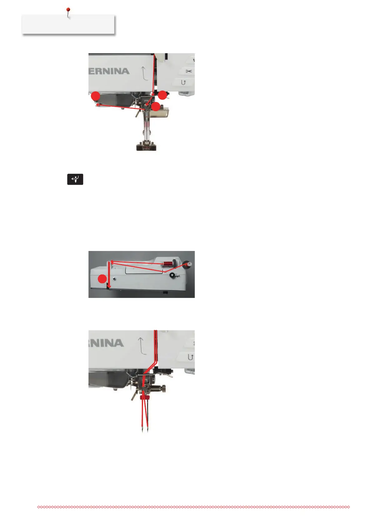 > Guide the first and the second thread to the thread guide above the needle.