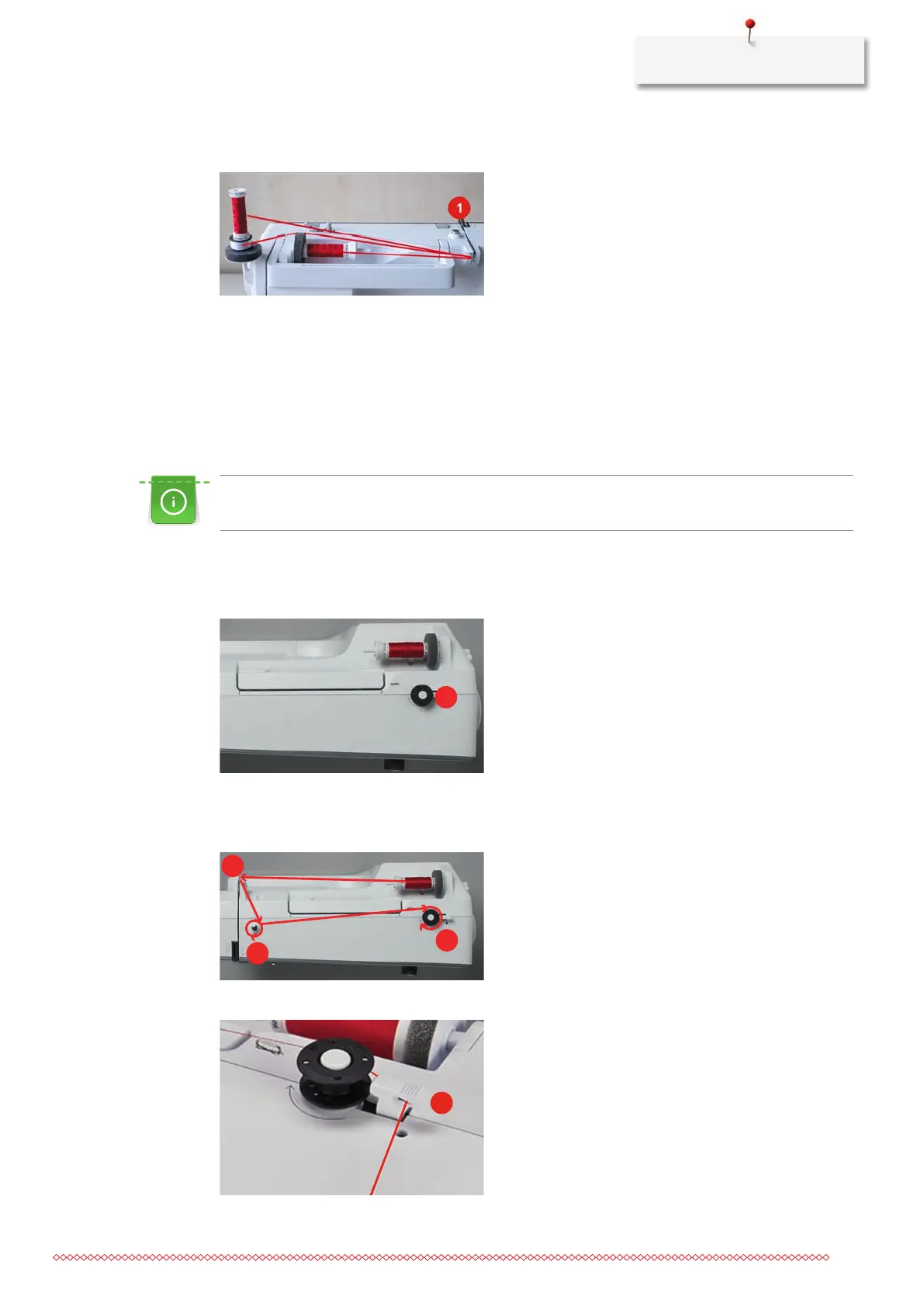 > Guide the thread around the bobbin winder pretension clockwise (3).