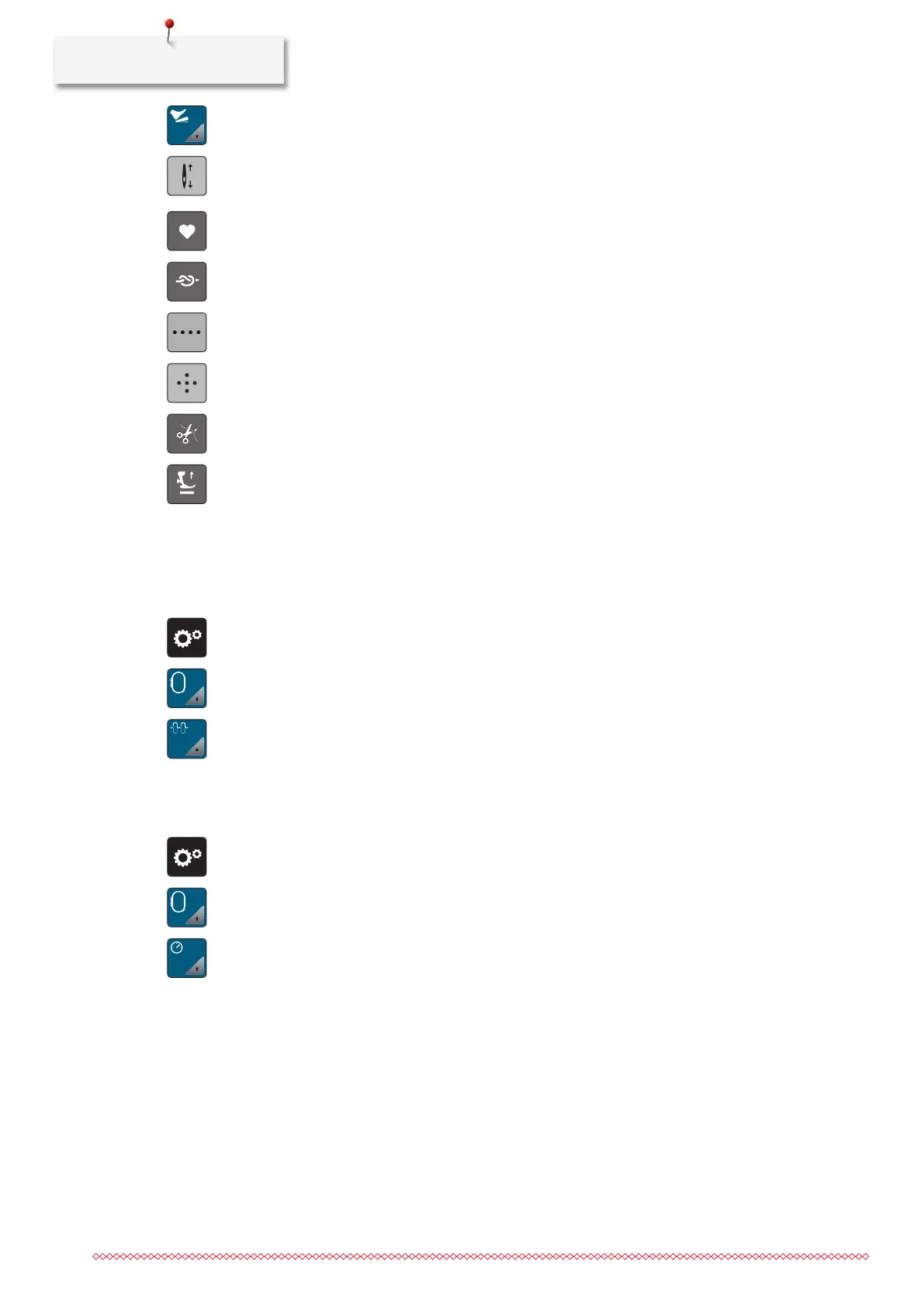 > To program the number of securing stitches, tap «Minus» or «Plus».