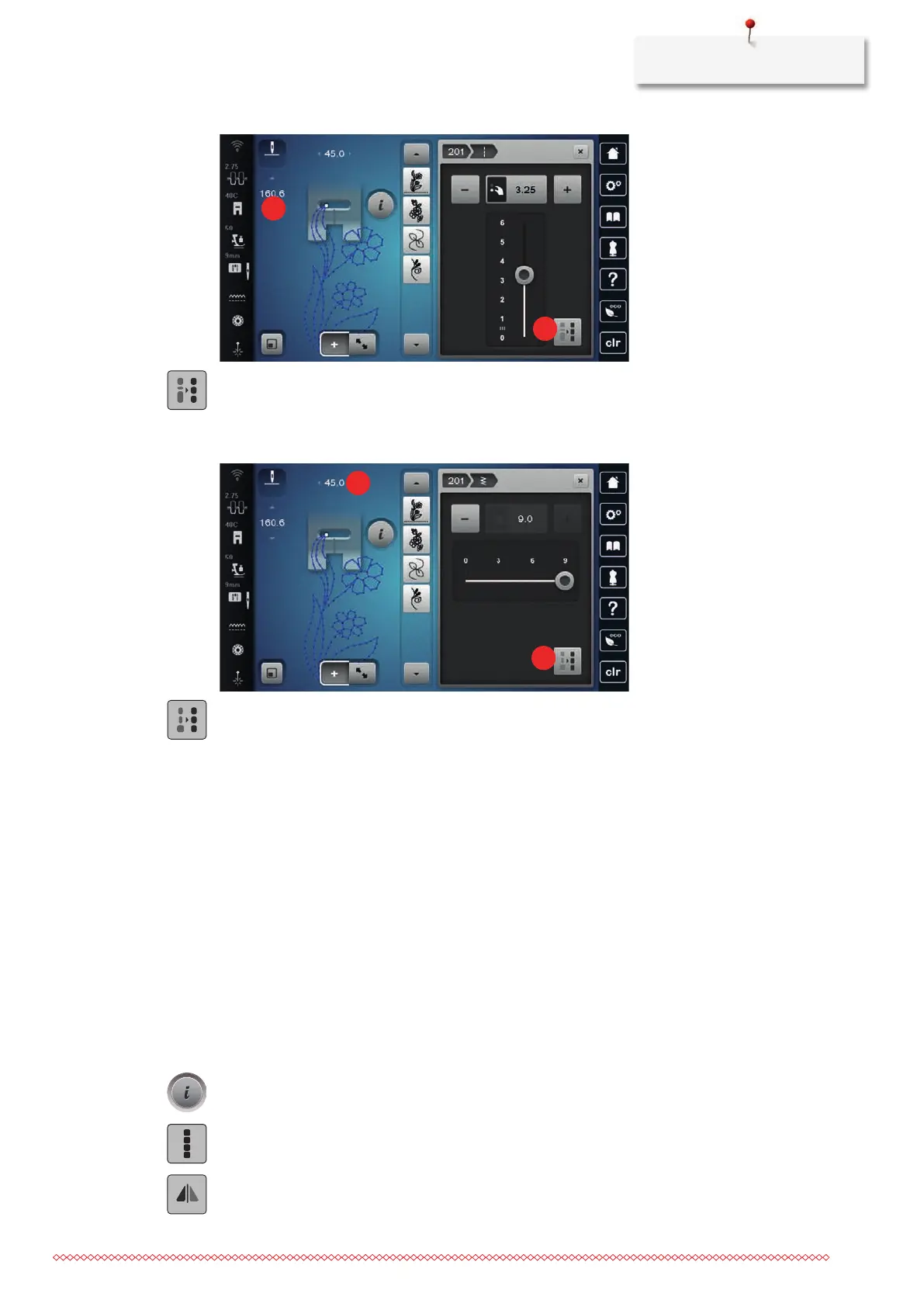 > To decrease the width of the stitch pattern combination proportionally, turn the «Upper Multi-function