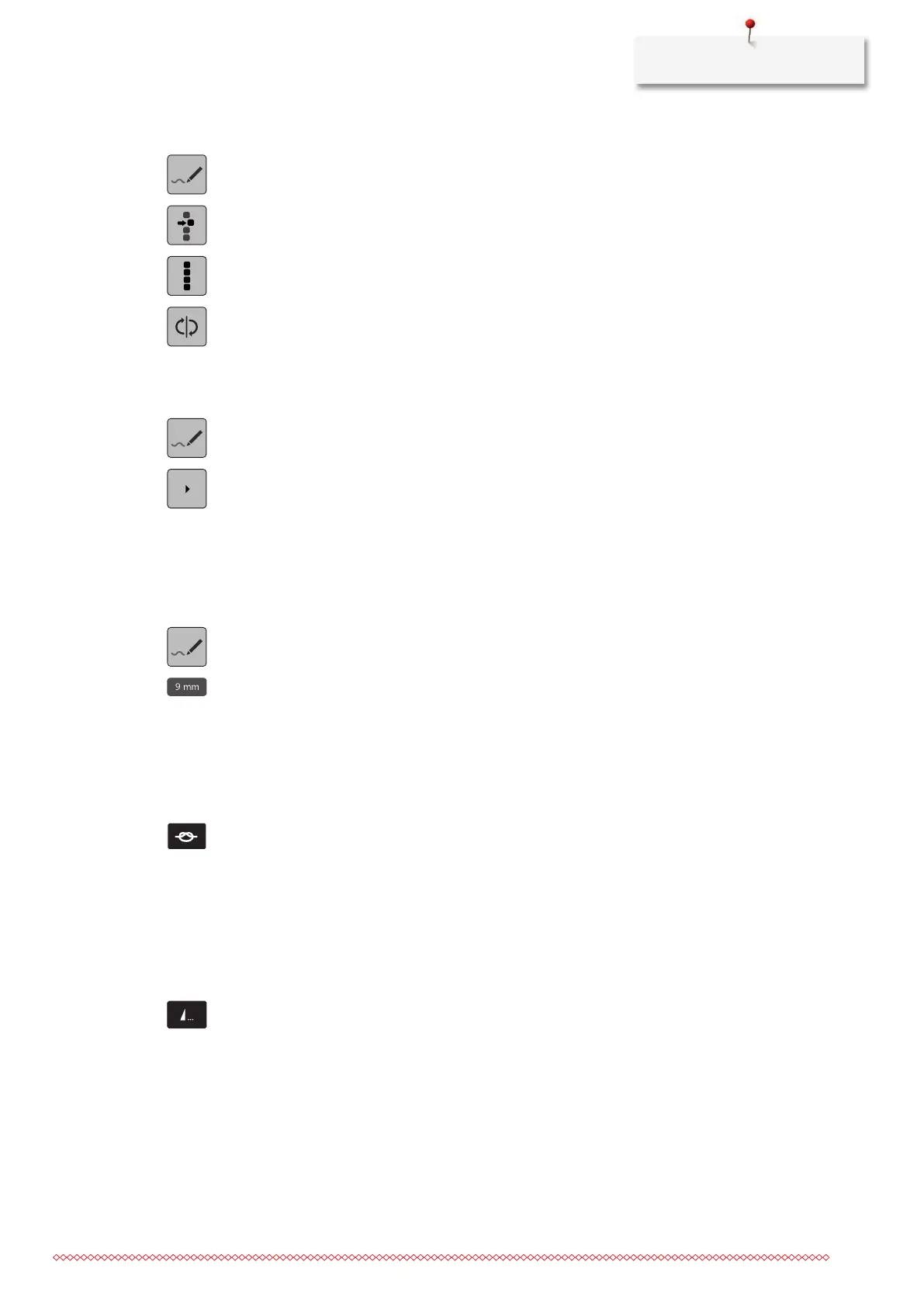 – While sewing, a stop icon indicates that the function is activated and the stitch pattern or the current