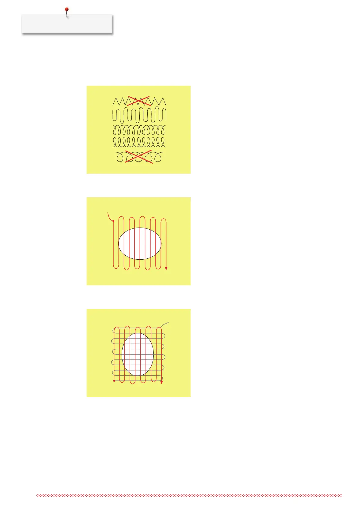 > Move in curves when changing the direction to avoid holes and thread breakage.