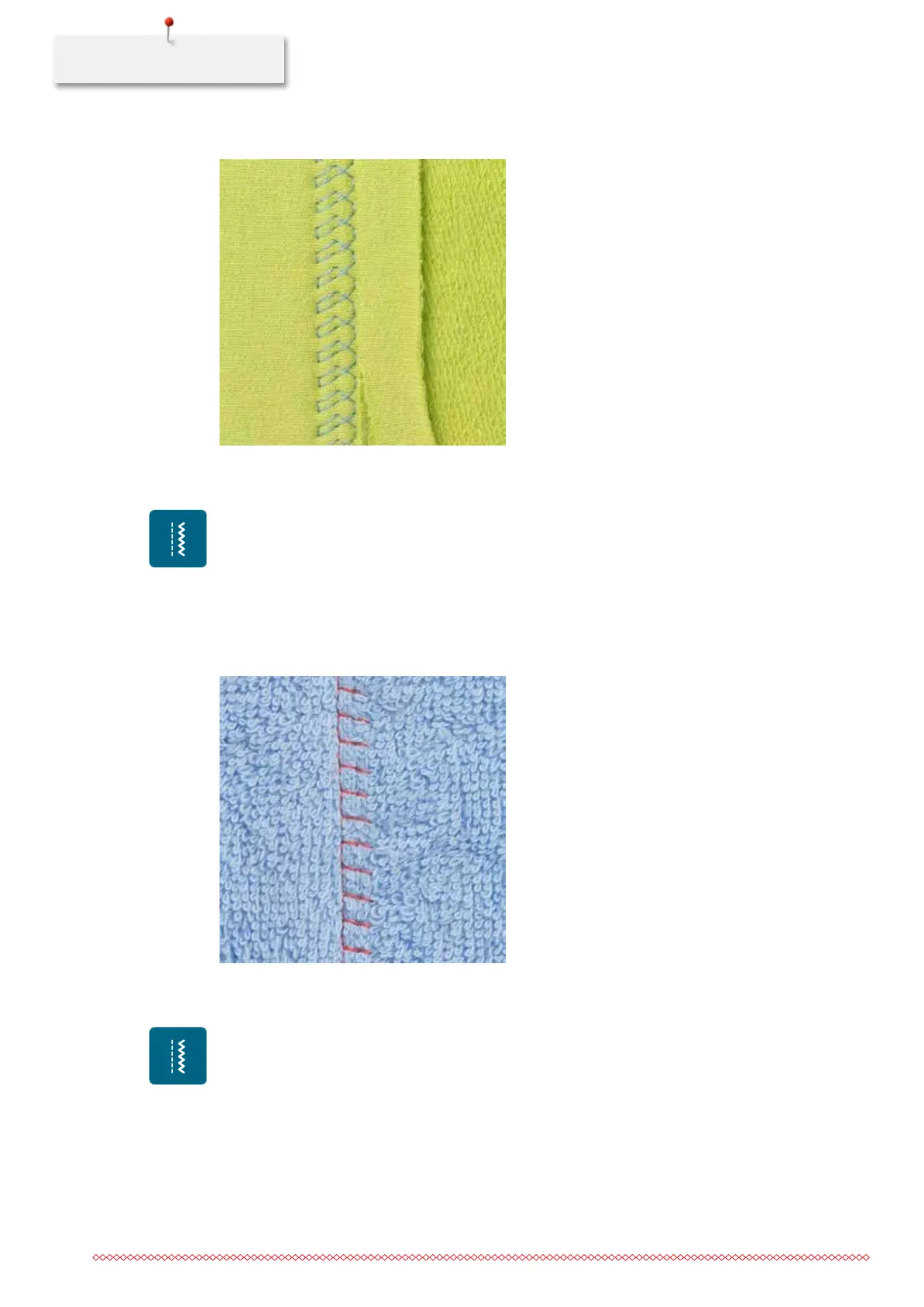 The flat joining seam is especially suitable for or thick materials such as terry cloth, felt and leather.