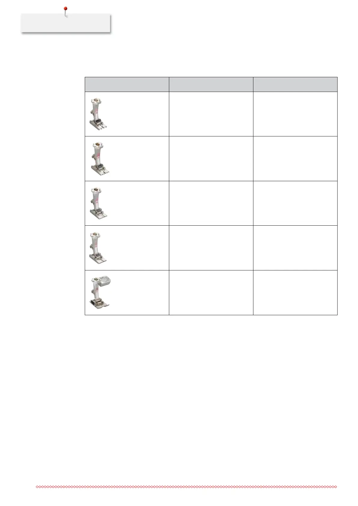 Pintuck foot Number Description