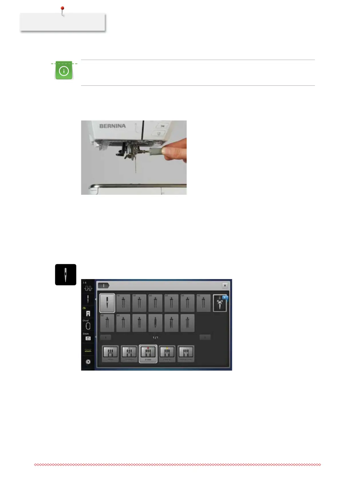 – If the selected needle is not suitable in combination with the stitch plate, starting the machine is