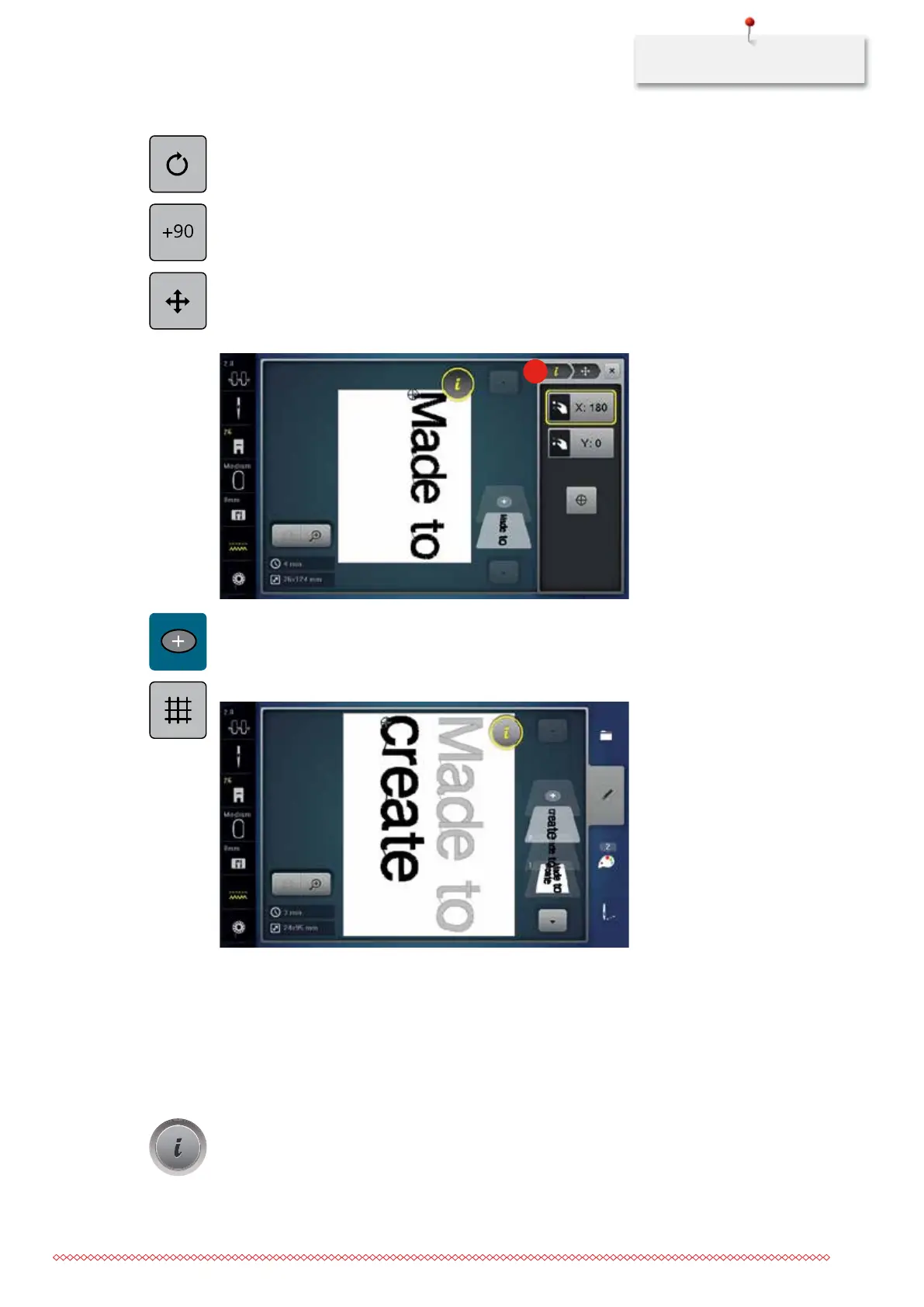 > Touch the icon «+90» to rotate the text by 90°.