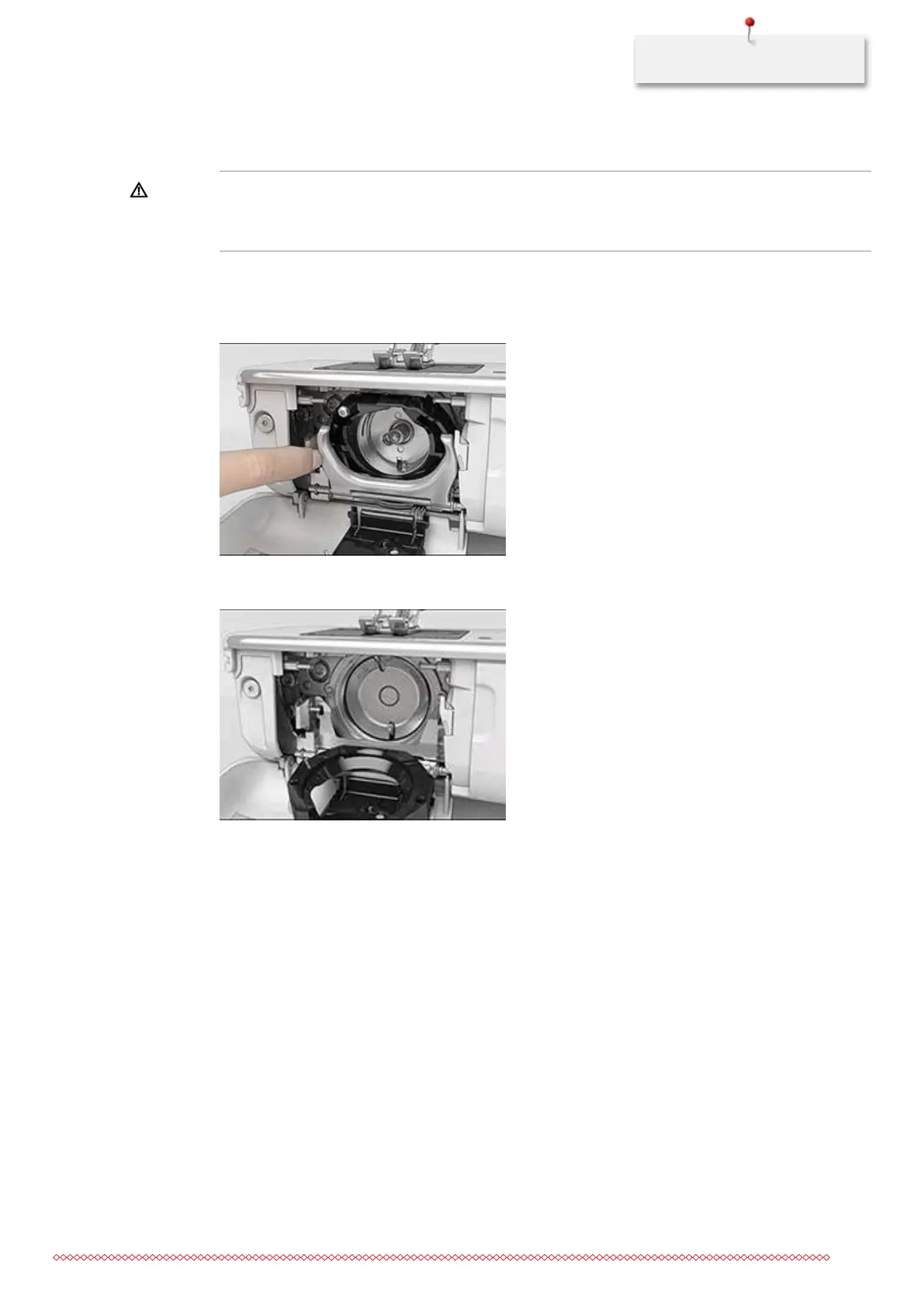 > Remove the bobbin case.