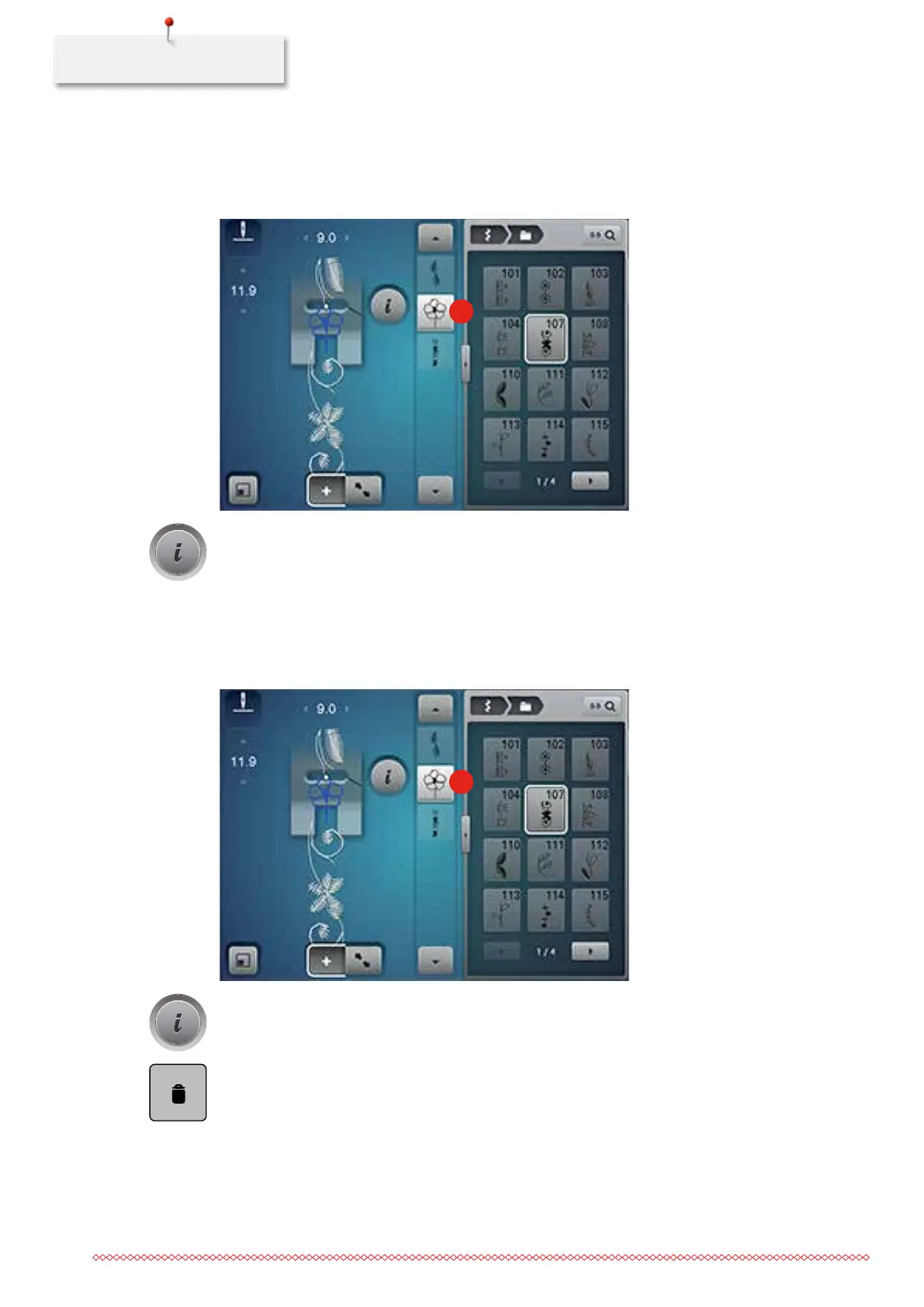 > Touch the icon «Delete» or select the desired stitch pattern with the touchscreen pen or the finger, keep