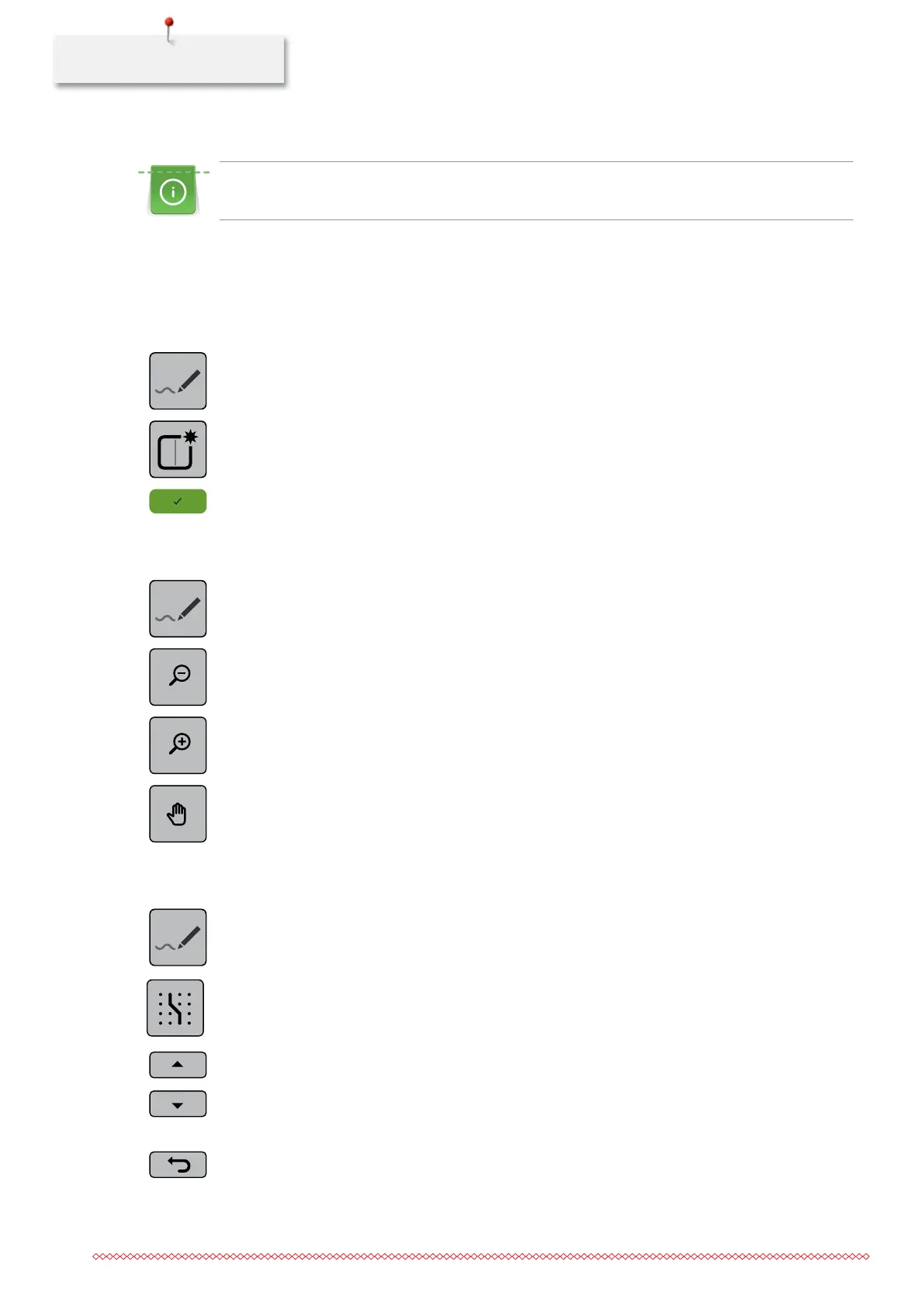 > Touch the icon «Zoom out» to minimize the view of the stitch pattern.