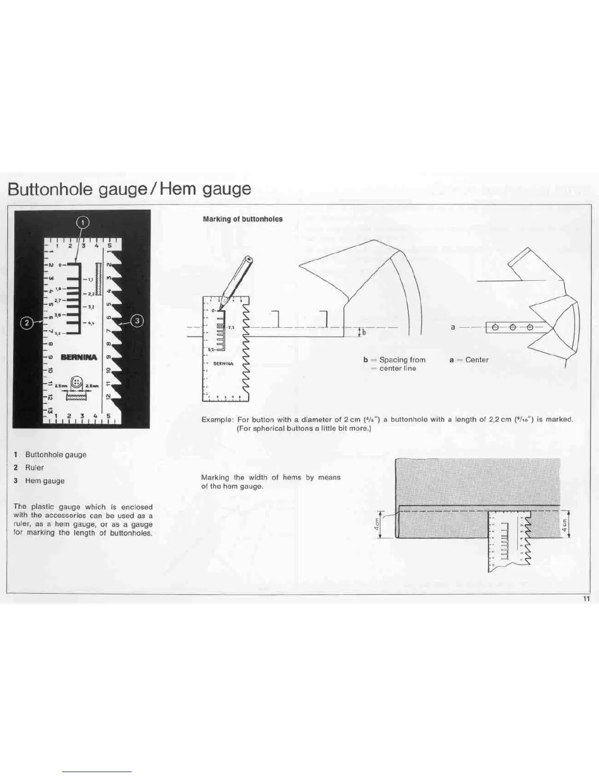 Bernina 807 - Buttonhole Gauge;Hem Gauge; Marking of Buttonholes