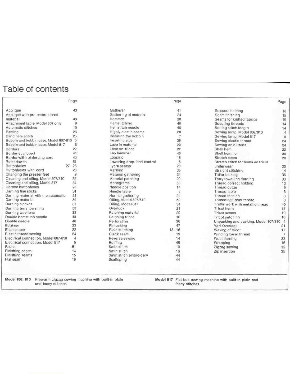 Bernina 807 - Table of Contents