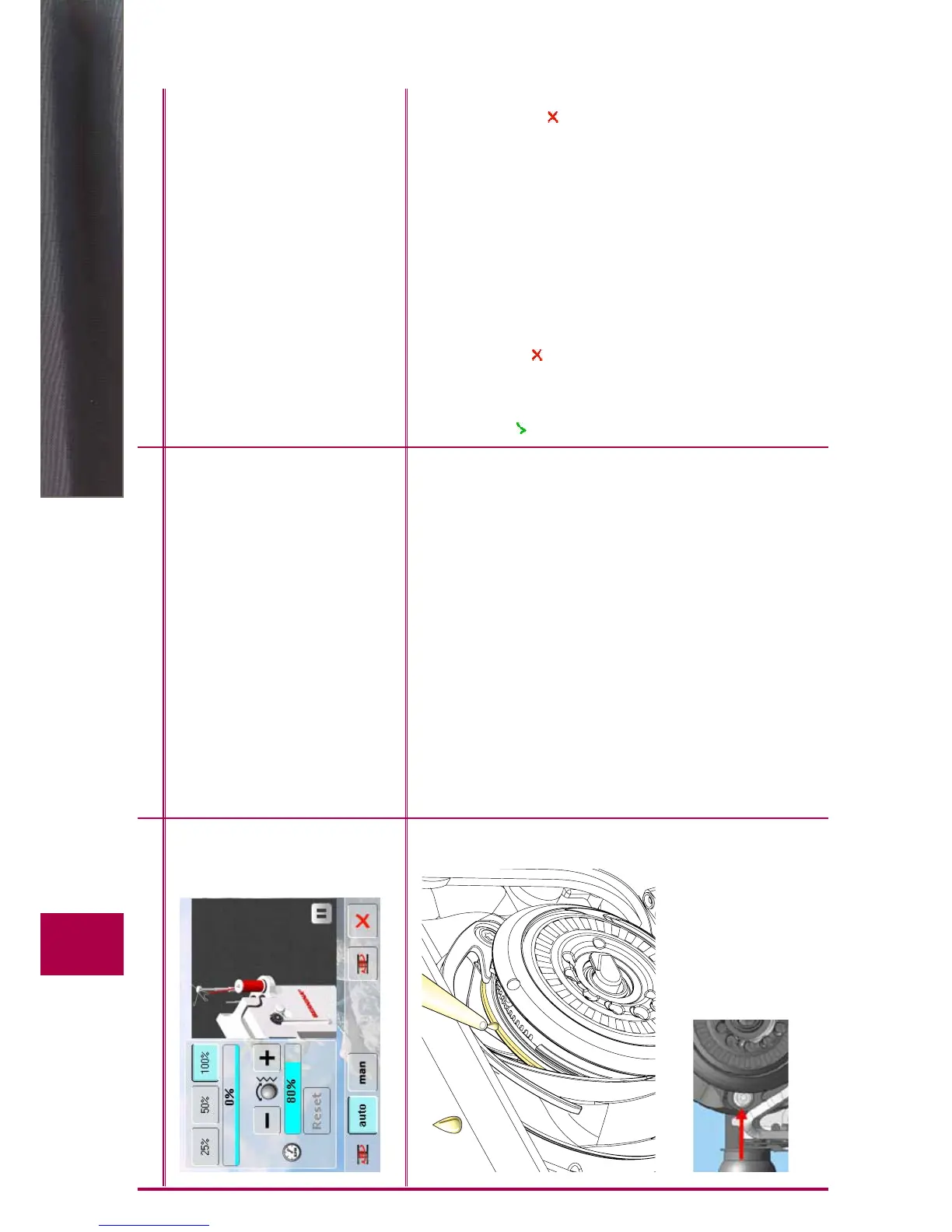 left) by turning the handwheel clockwise for correct threading.