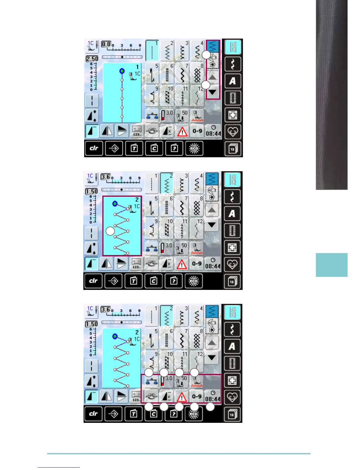 Bernina 820 - Selection, Stitch Altering, and Function Areas