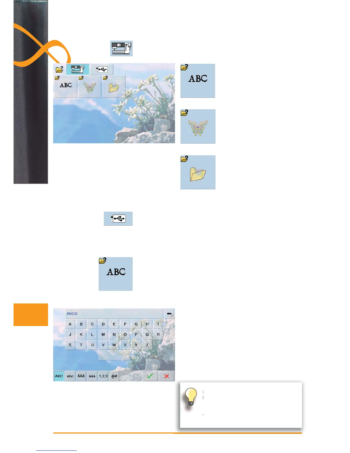 select embroidery motifs from the «Alphabets», «Motifs» and «My Designs» ►