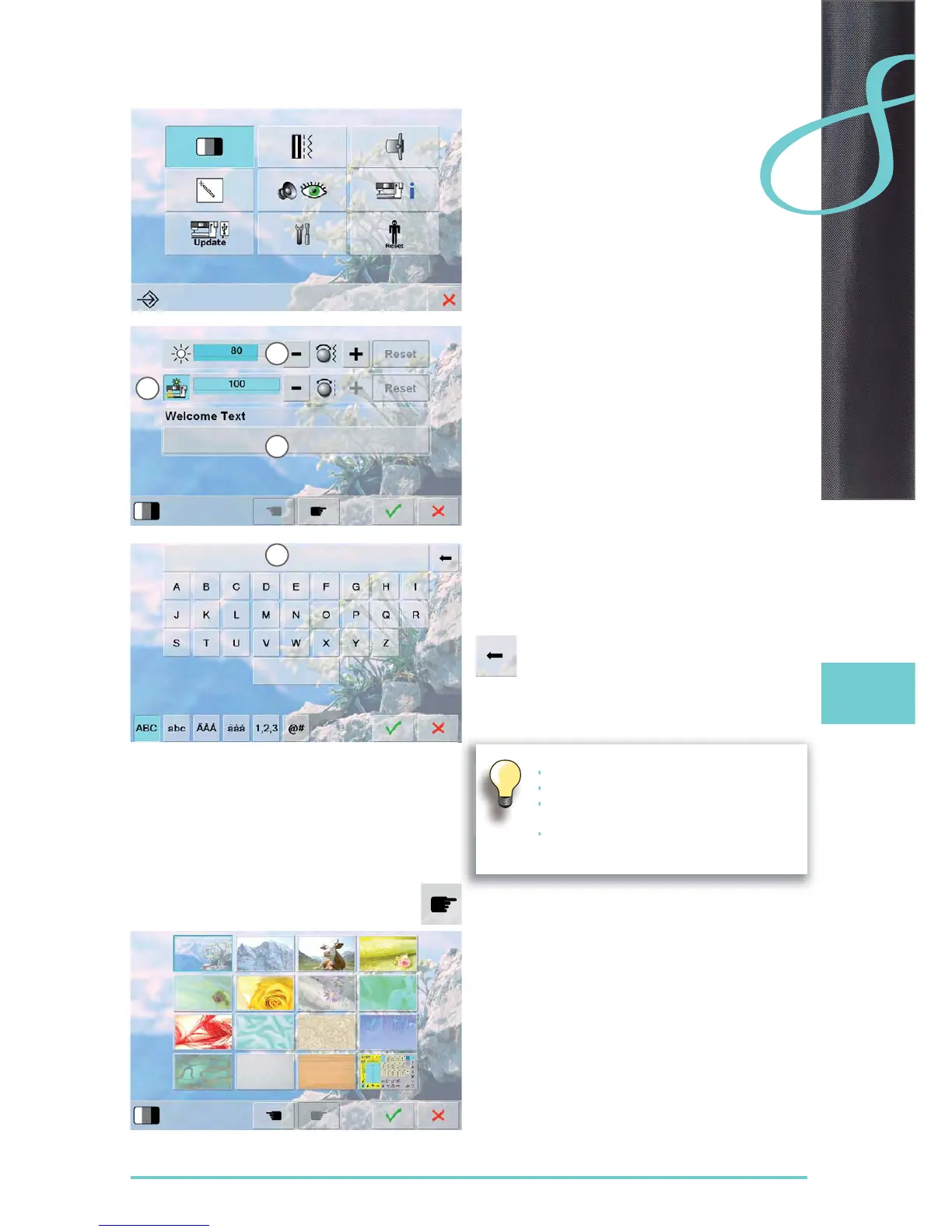 turn stitch width knob or touch the «+» or «-» icon the ►