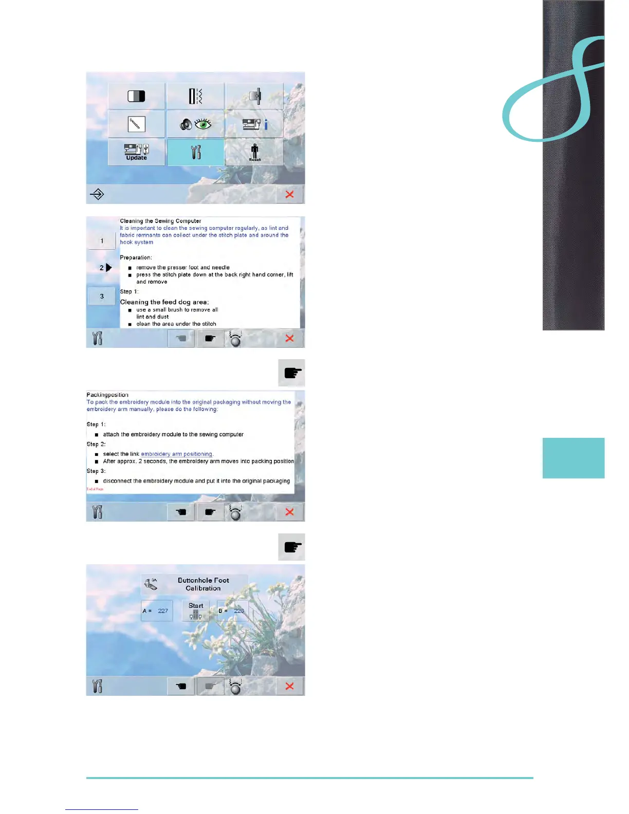 clean the sewing-/ embroidery computer according to ►