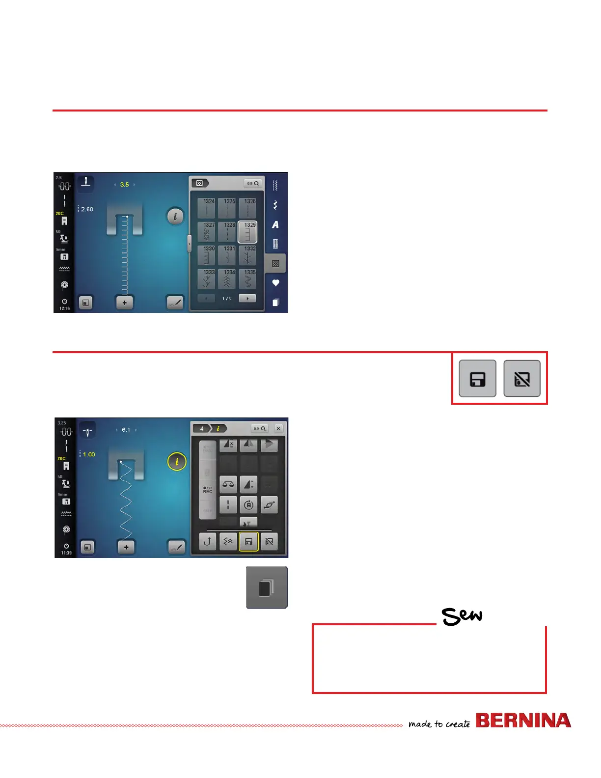 Changes can be made to any stitch and saved in the permanent memory of the machine. The