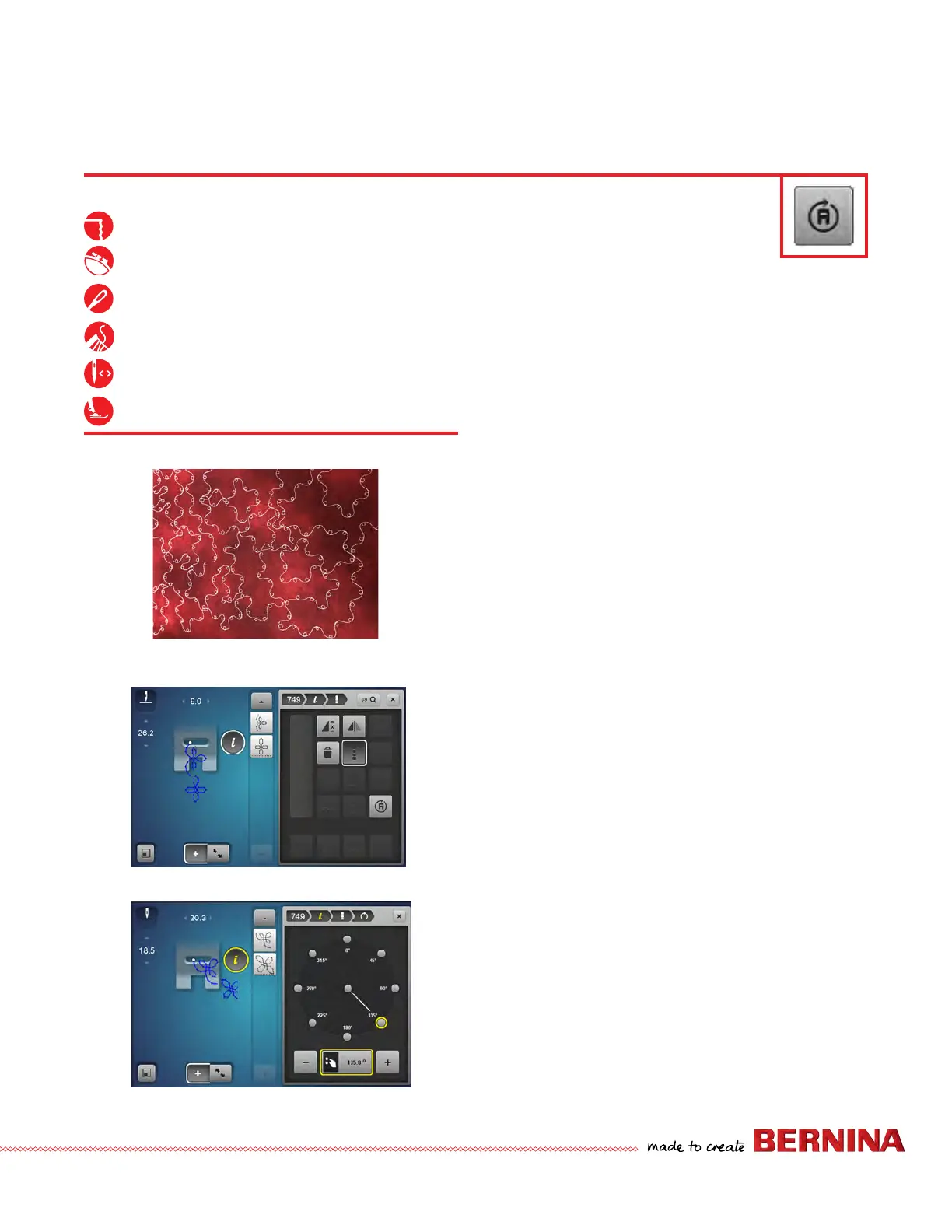1. Select Stitch #748. Select the "i" menu.