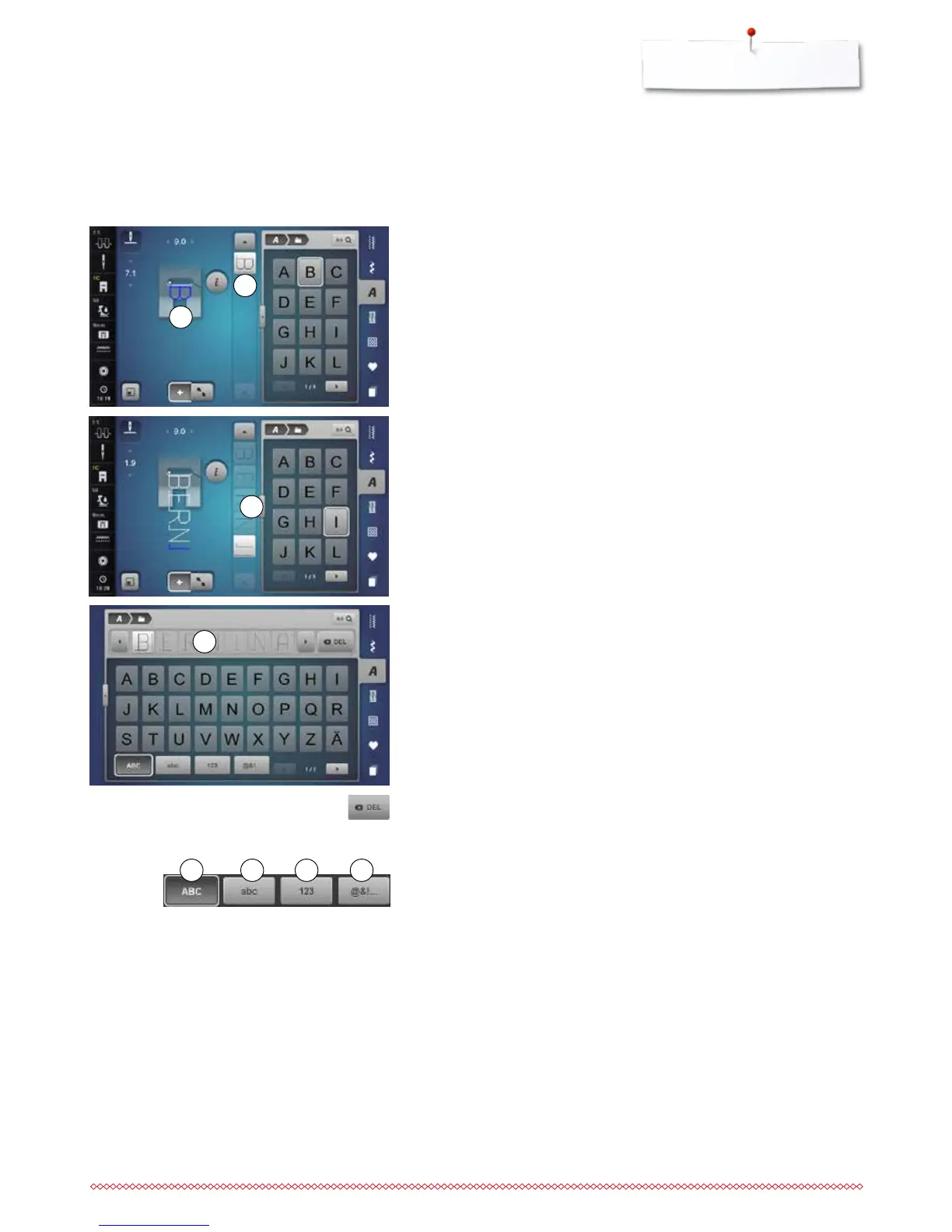 the letter appears in the Stitch Altering Area 1 and in the Editing Area 2