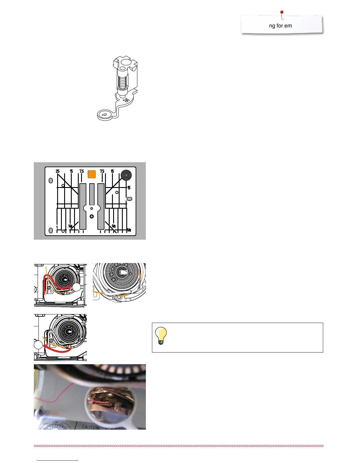 hold the thread into the rounding of the bobbin retainer and guide along the