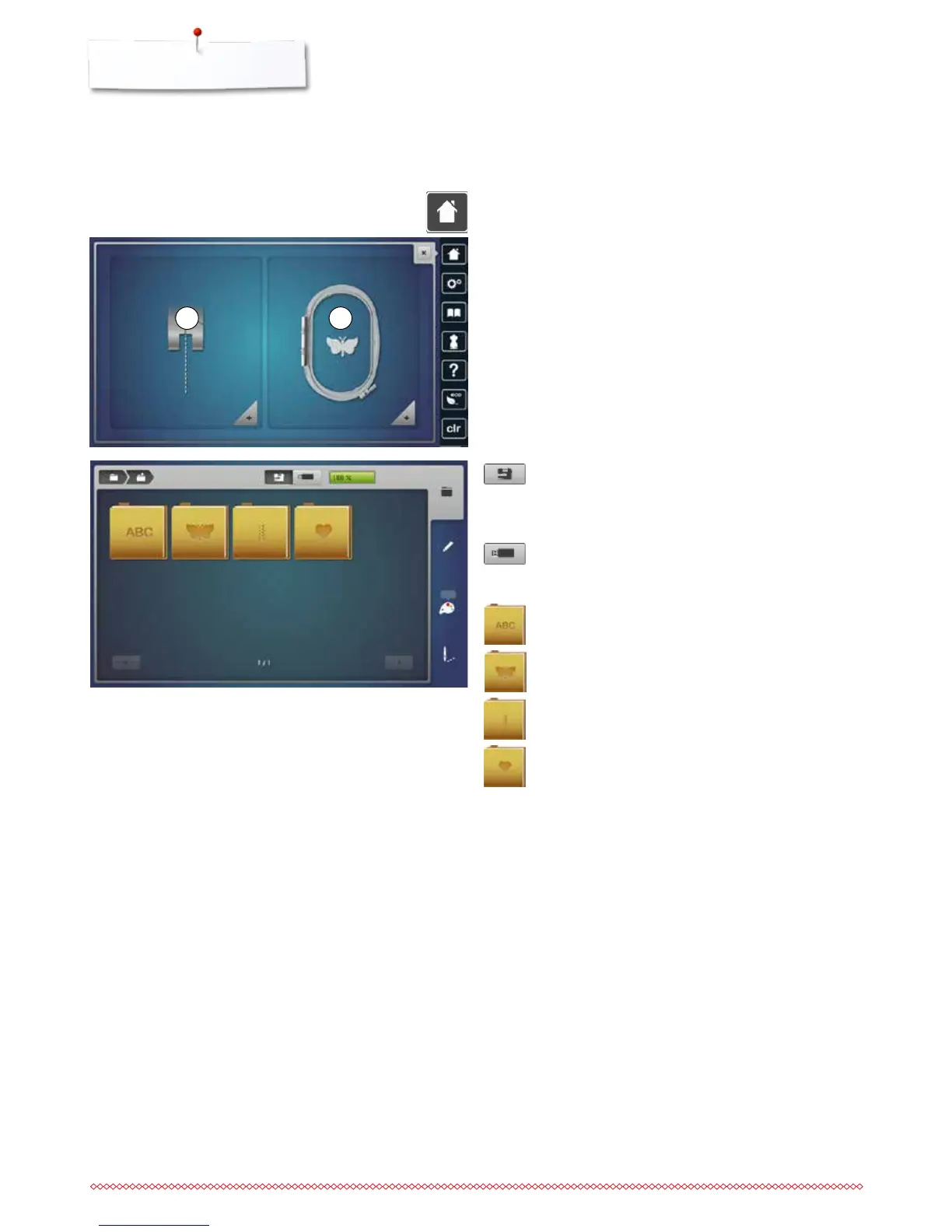 «Alphabets», «Motifs», «Stitch patterns» or «My