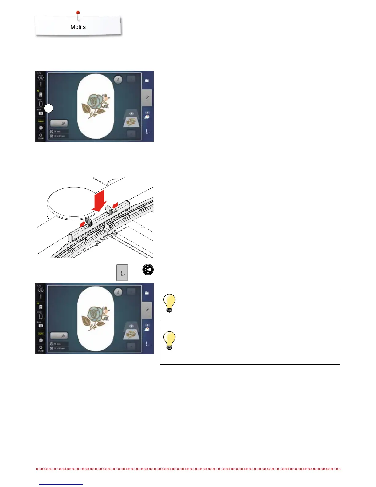 the «Select hoop»-icon 1 Displays the recommended hoop