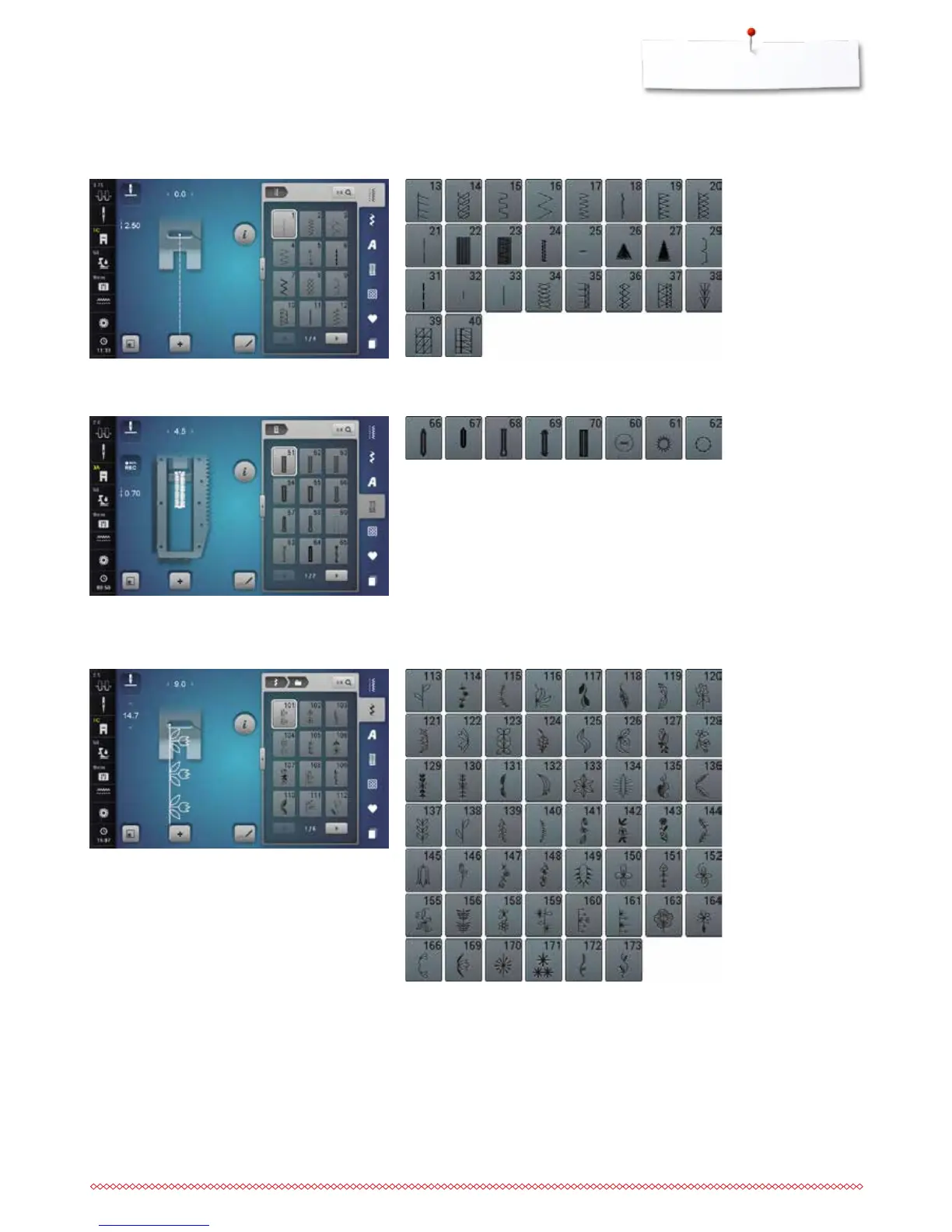 Bernina 880 - Overview Stitch Patterns; Practical Stitches; Buttonholes; Decorative Stitches