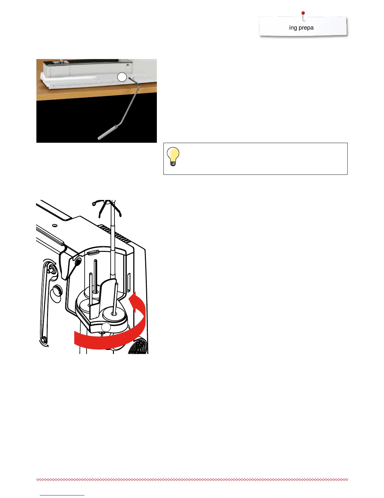 the presser foot is raised; the feed dog is lowered simultaneously. The