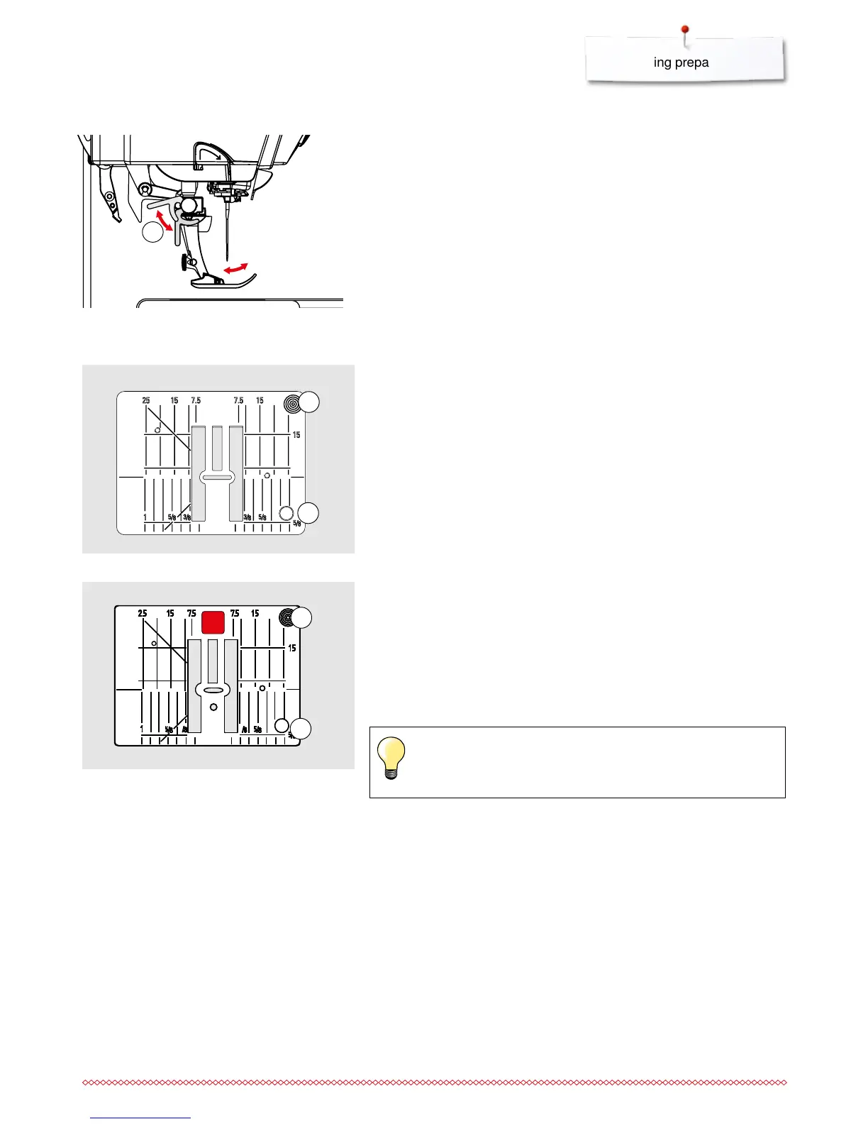 the stitch plate is marked with vertical, horizontal and diagonal lines in mm