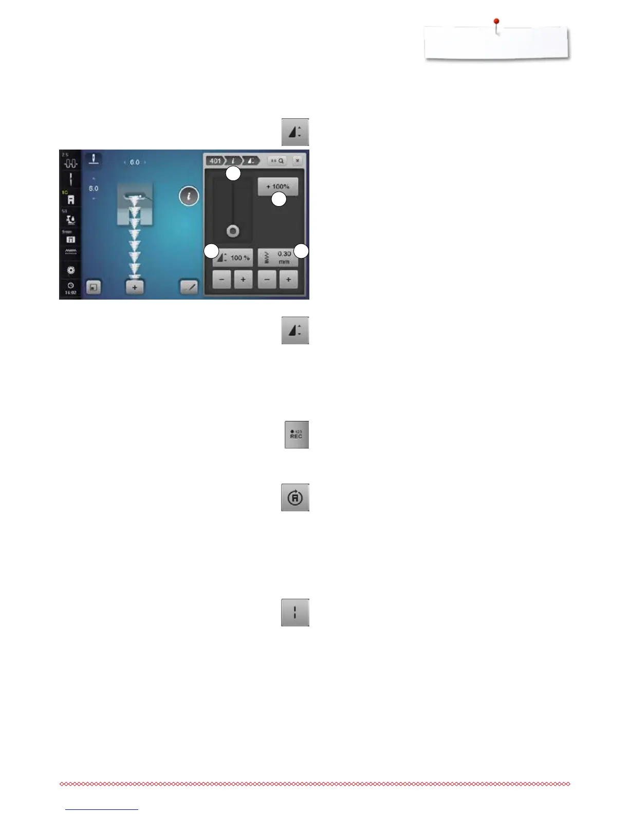 Certain decorative stitches (e.g. No. 401) allow an alteration of