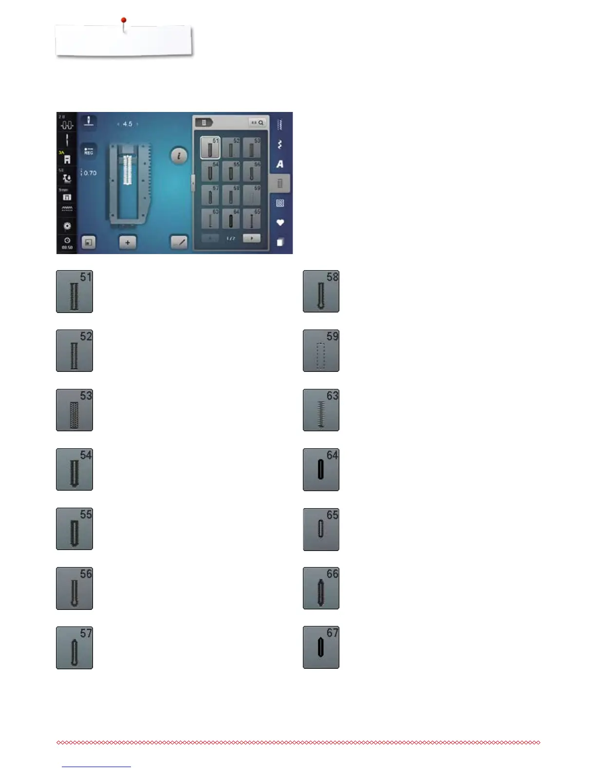 used as a decorative effect. All buttonholes can be programmed