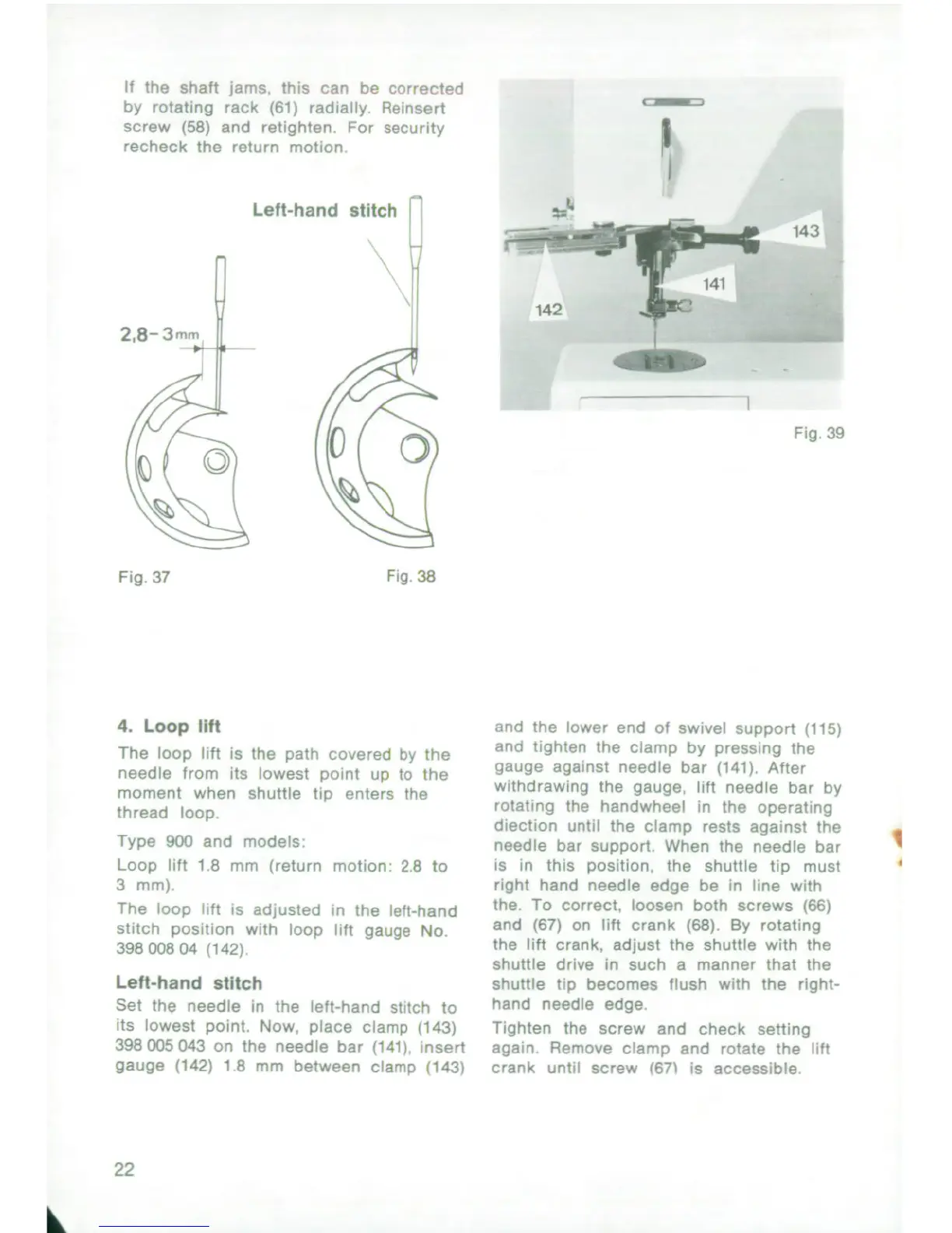 Bernina 900 electronic - Loop Lift and Stitch Settings; Loop Lift Adjustment