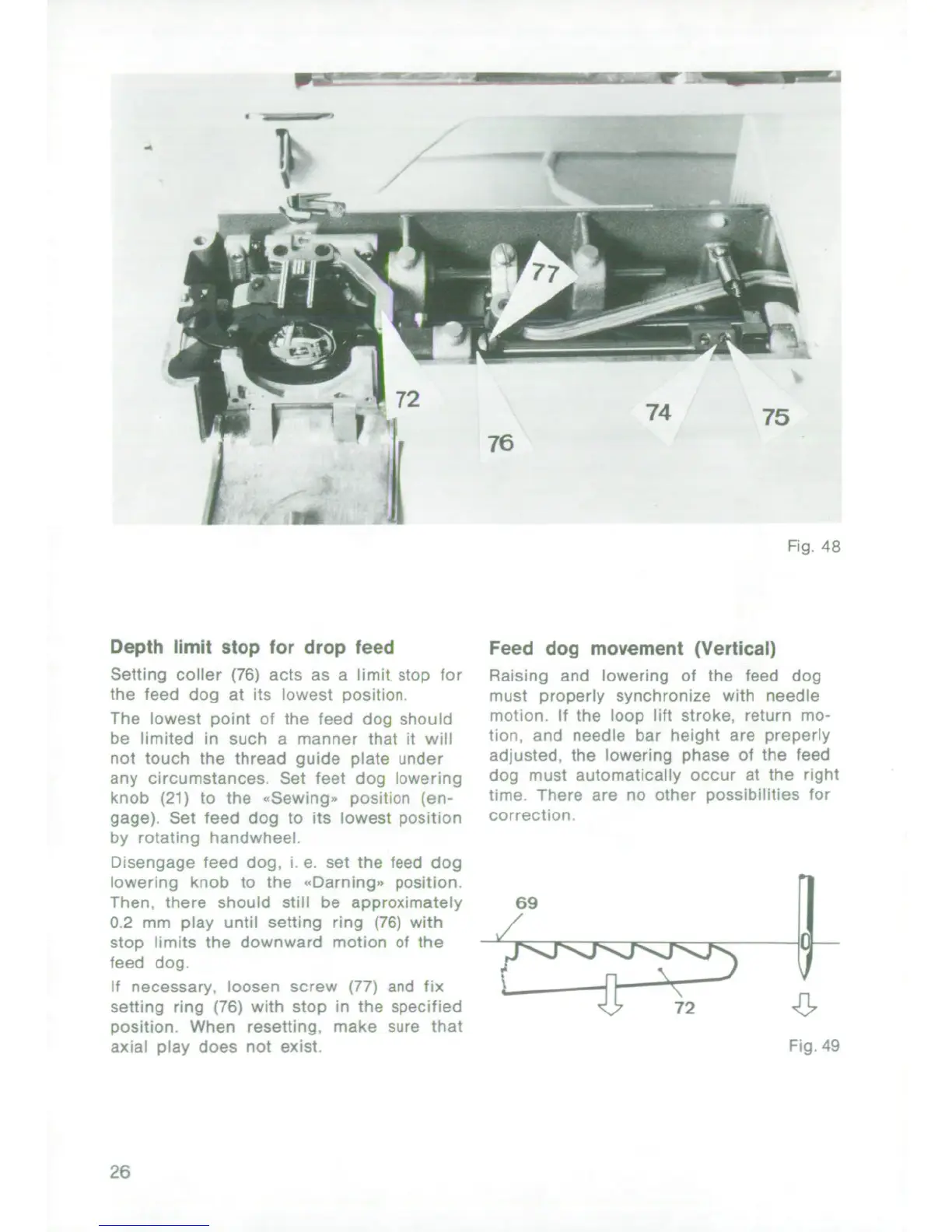 Bernina 900 electronic - Feed Dog Drop and Vertical Motion