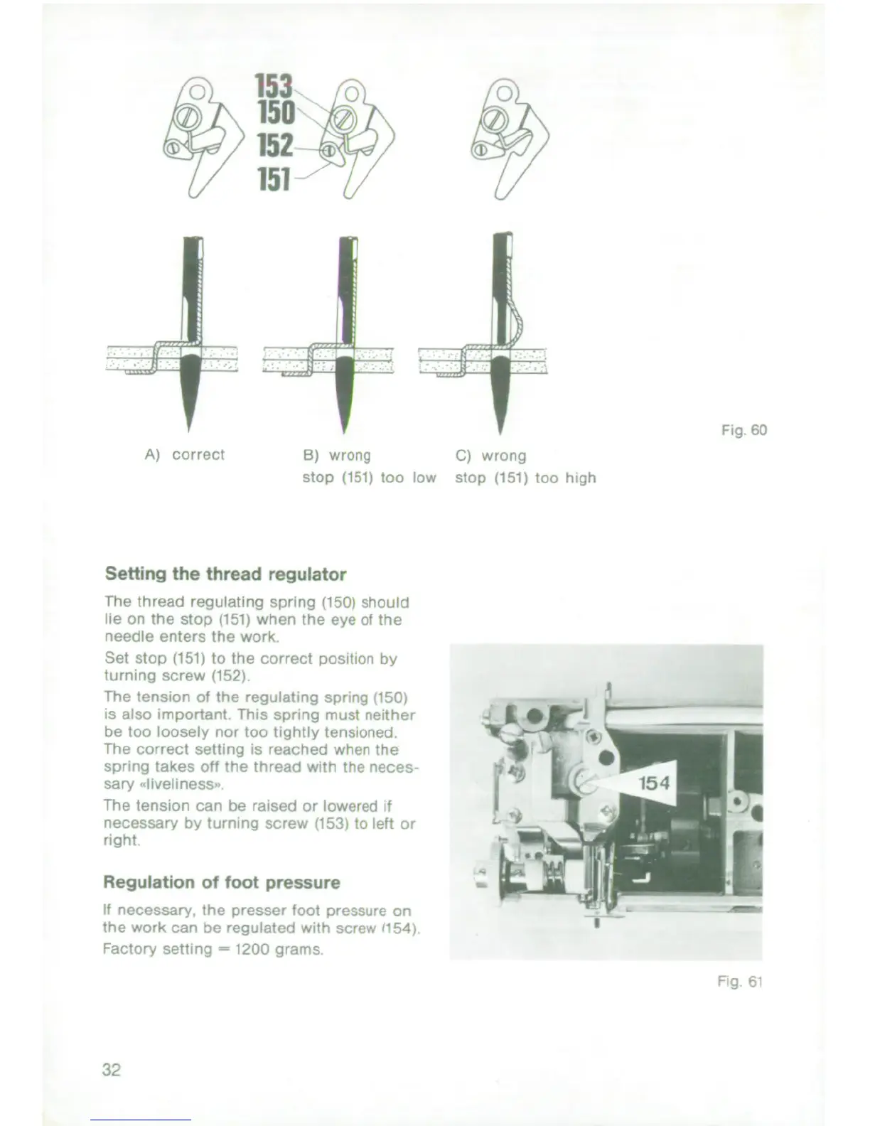 Bernina 900 electronic - Thread Regulator and Foot Pressure; Setting the Thread Regulator; Regulation of Foot Pressure