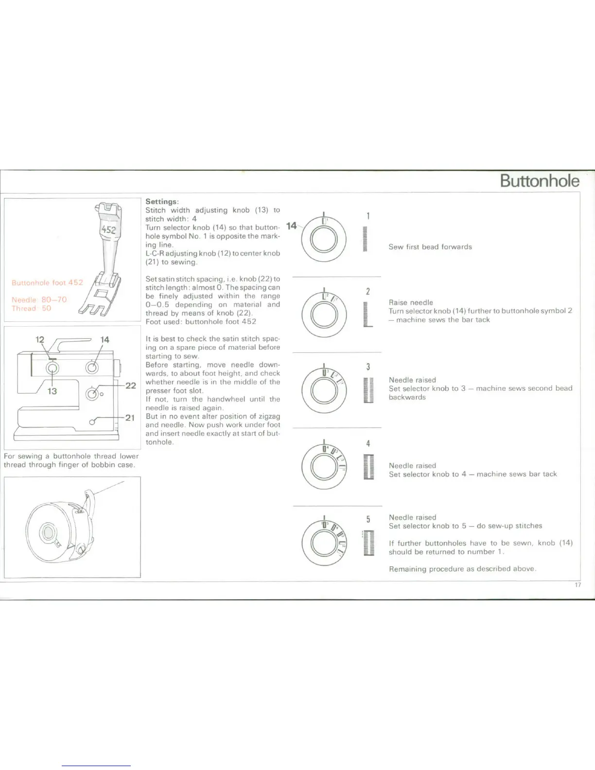 Bernina 900 - Sewing Buttonholes; Buttonhole Settings; Buttonhole Sewing Procedure
