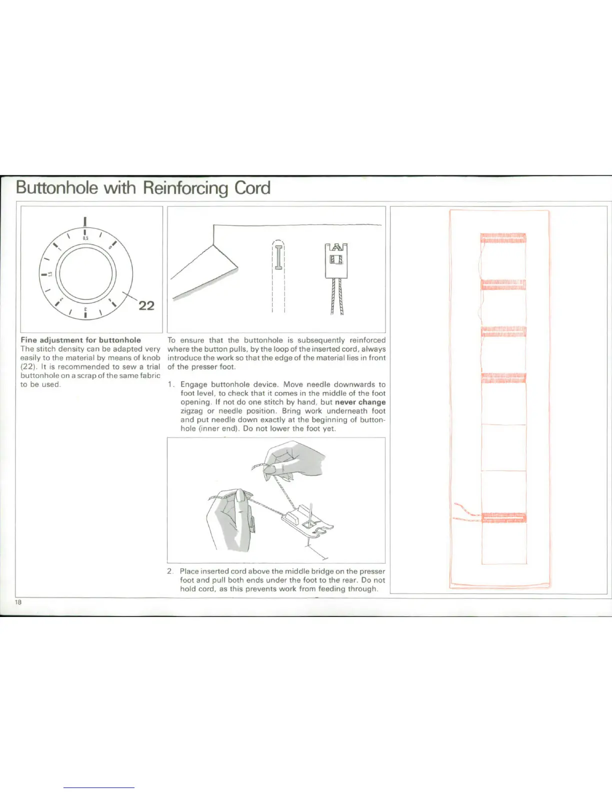 Bernina 900 - Buttonholes with Reinforcing Cord; Fine Adjustment for Buttonhole Density; Reinforcing Cord Application
