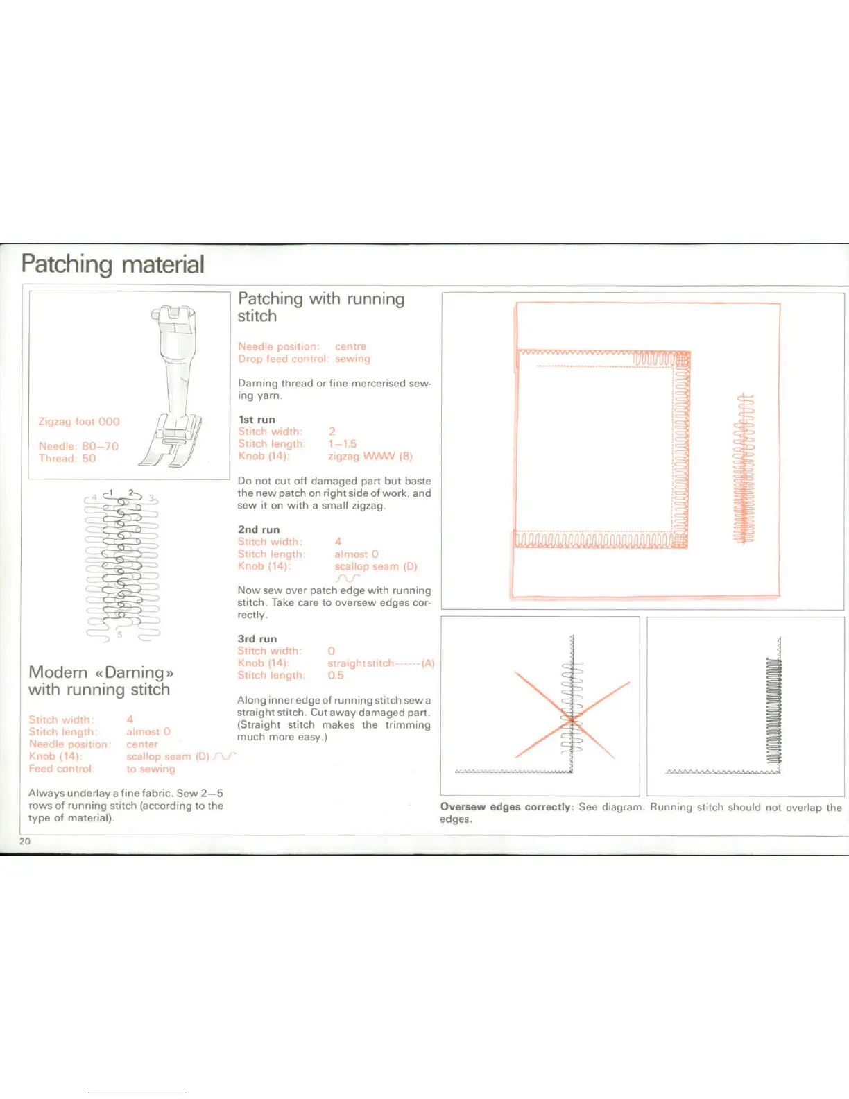 Bernina 900 - Patching Material Techniques; Patching with Running Stitch; Modern Darning with Running Stitch